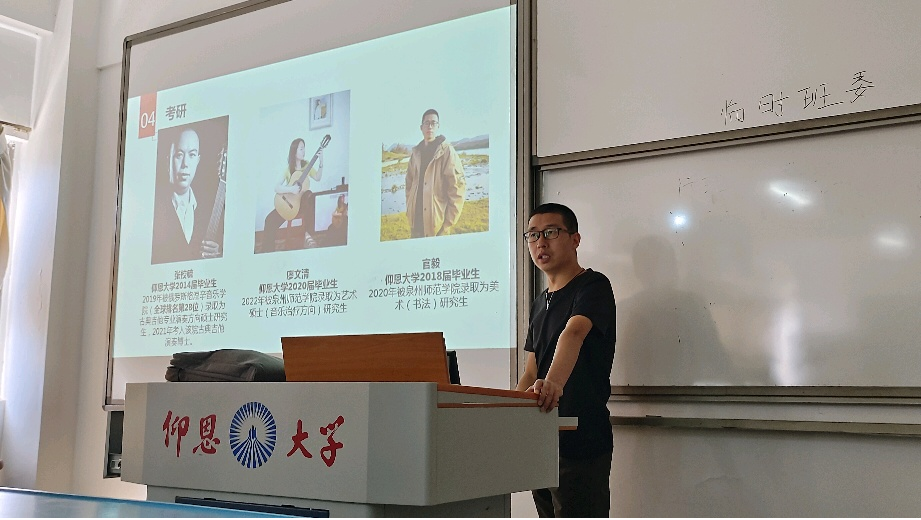 从理论课到实践课,皆为名师,带领同学们走向专业,通往艺术的大门。看着ppt上出类拔萃的教师介绍,同学们不由自主地发出赞叹。副主任卜繁波也借此引导大家好好学习,以不懈的努力提升自己,让自己的未来可以有更多的选择。