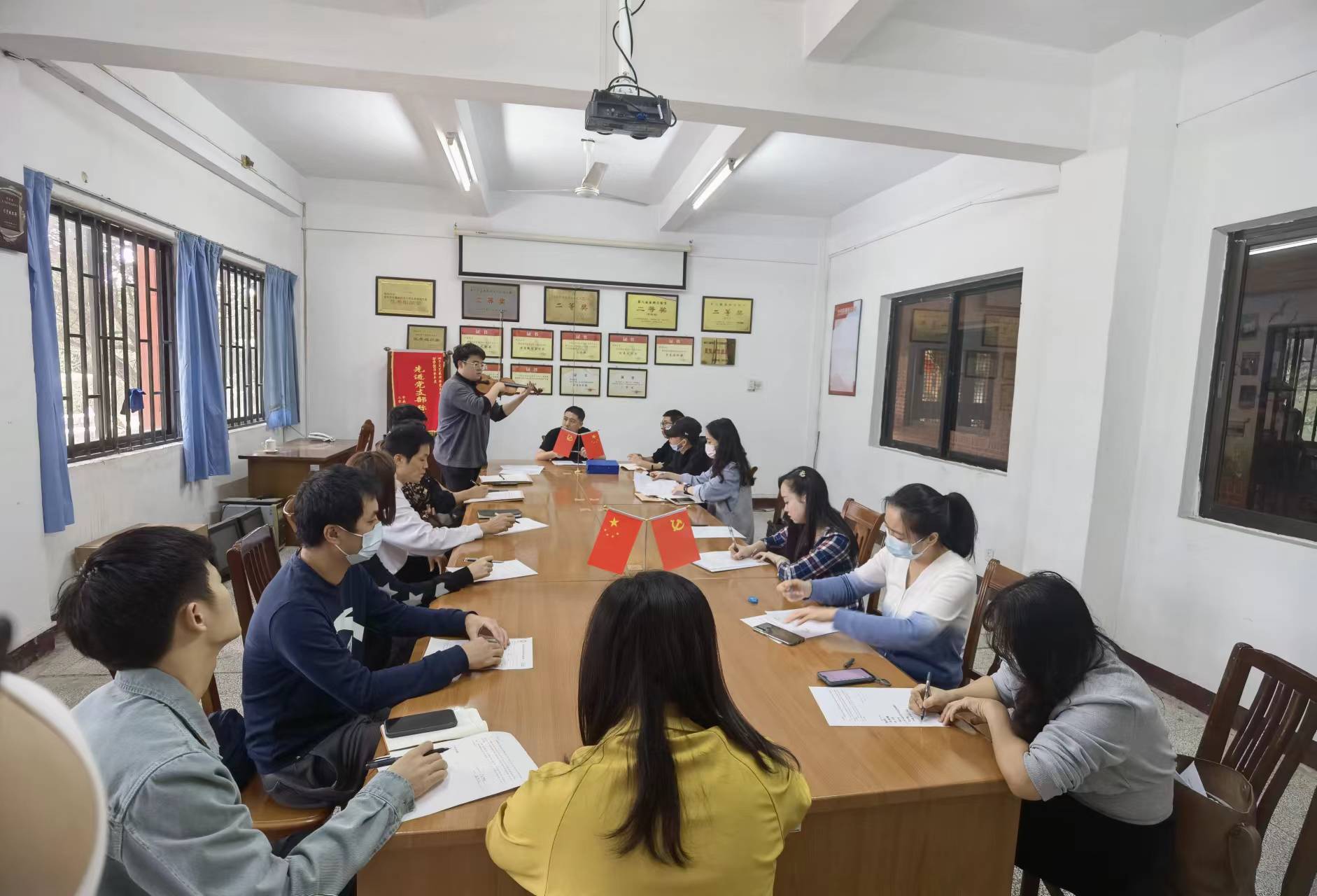 第一项,由庄达宏老师介绍乐曲《龙的传人》的两个不同版本,并对乐曲做了课程思政的融入。