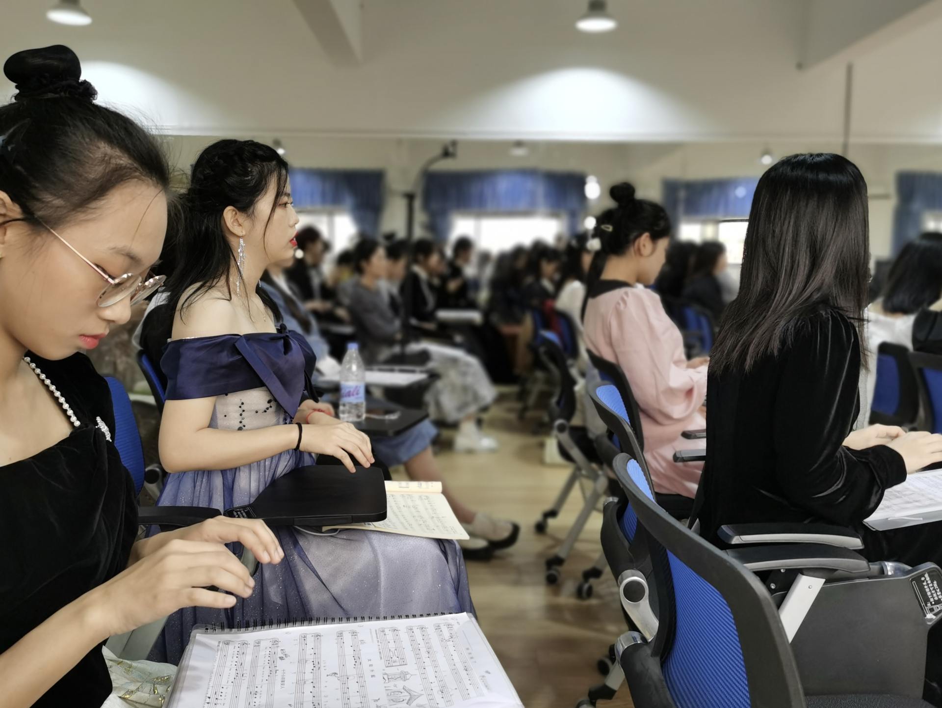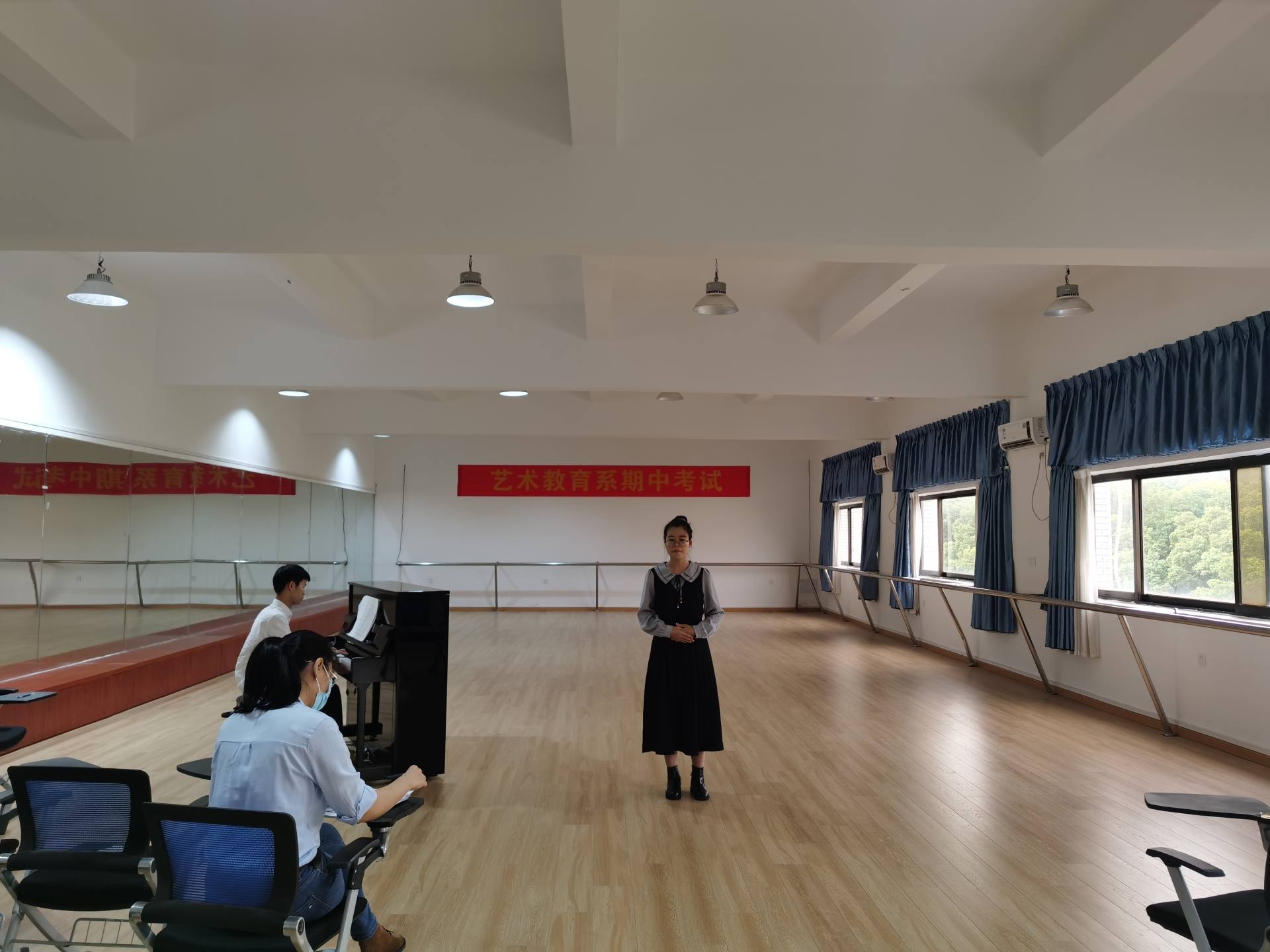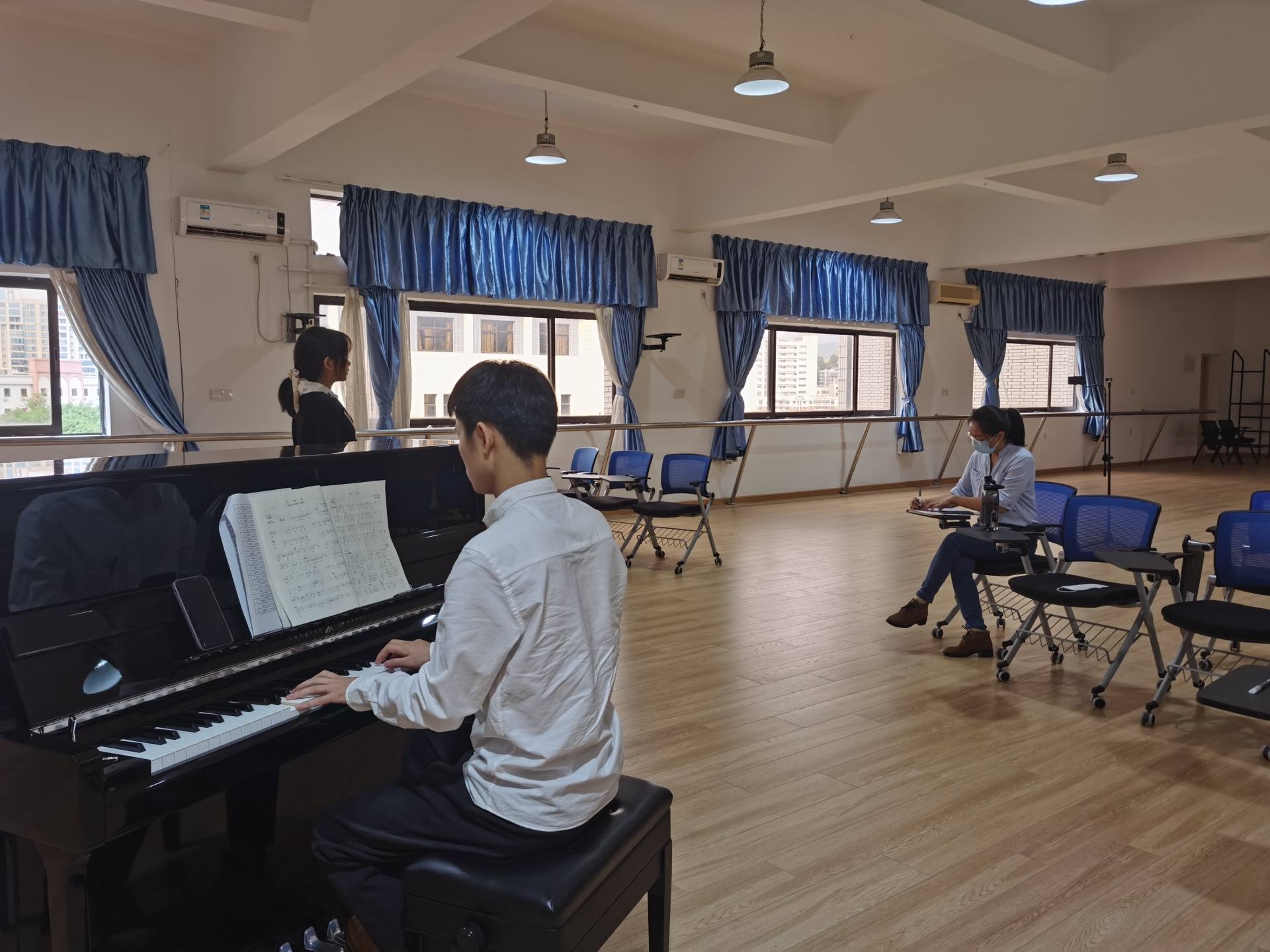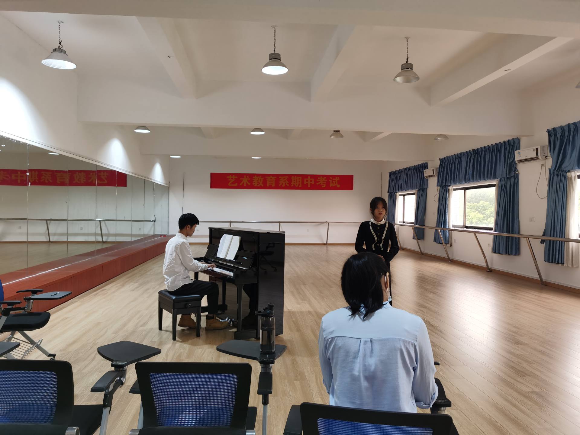 本次考试形式为现场专业技能展示,由老师进行现场打分。这种考试方式既有效检验了学生半个学期的学习成果,也让学生们积累了宝贵的现场演奏、演唱经验。