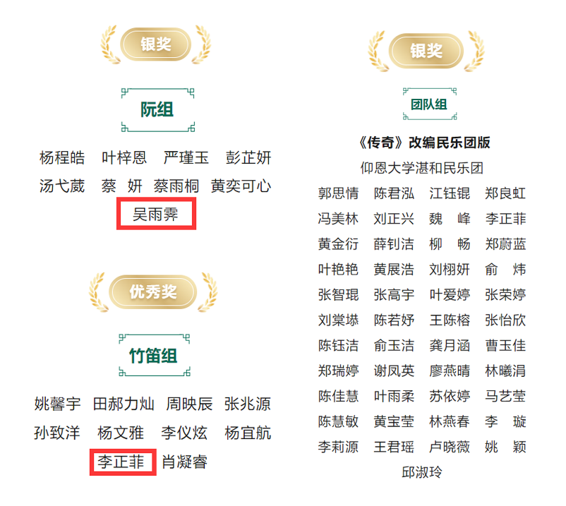本届大赛共有参赛作品1713个,经过41名国家级、省级民乐专家的评定,开云官网大学生艺术团民乐队斩获团队组银奖及独奏组中阮银奖、竹笛组优秀奖。