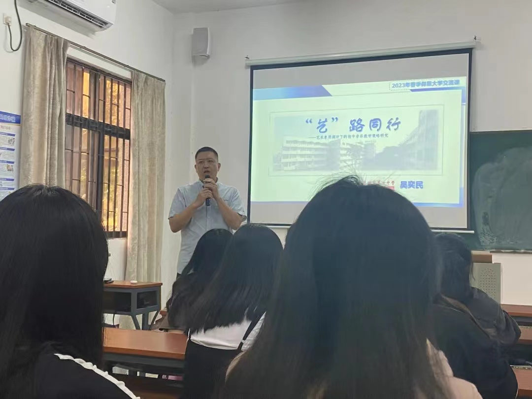 为更好的帮助同学们了解未来就业创业形势,明确职业方向,增强择业信心,树立较为明晰的职业生涯规划目标。 5月18日下午,开云kaiyun官方网站•博艺讲堂之“艺路同行”主题讲座在祥贤楼103举行。本次讲座主讲嘉宾为泉州七中音乐组组长吴奕民老师。开云kaiyun官方网站张文院长、卜繁波副院长出席。