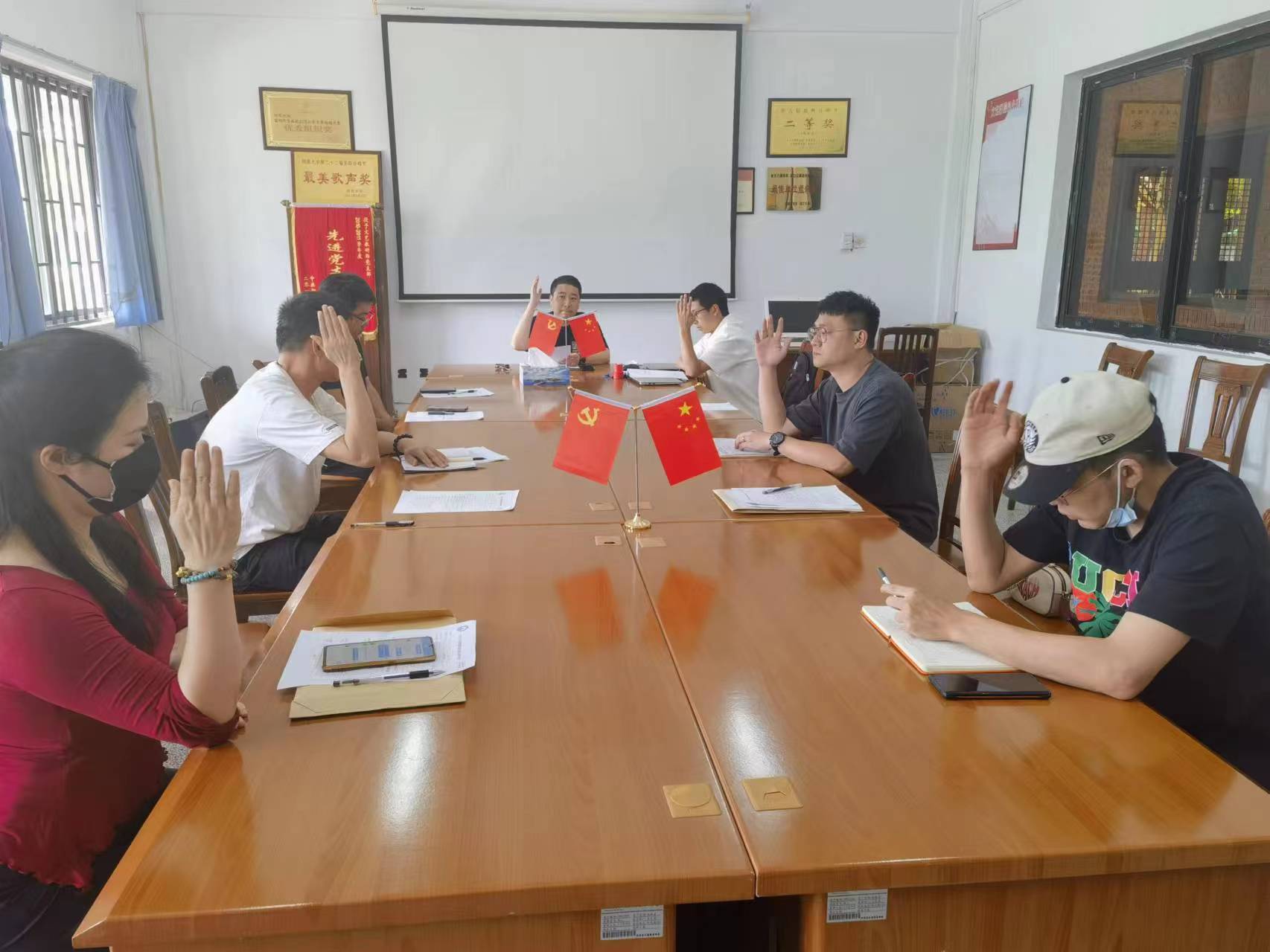 2023年6月12日上午11点,在仰光楼104开云kaiyun官方网站会议室召开开云kaiyun官方网站党支部发展党员大会。由开云kaiyun官方网站党支部书记张文同志主持,党支部宣传委员黄怀宇记录,党支部全体党员出席,入党积极分子郭亭序、魏雅芳、翁佳仪三位同志列席。