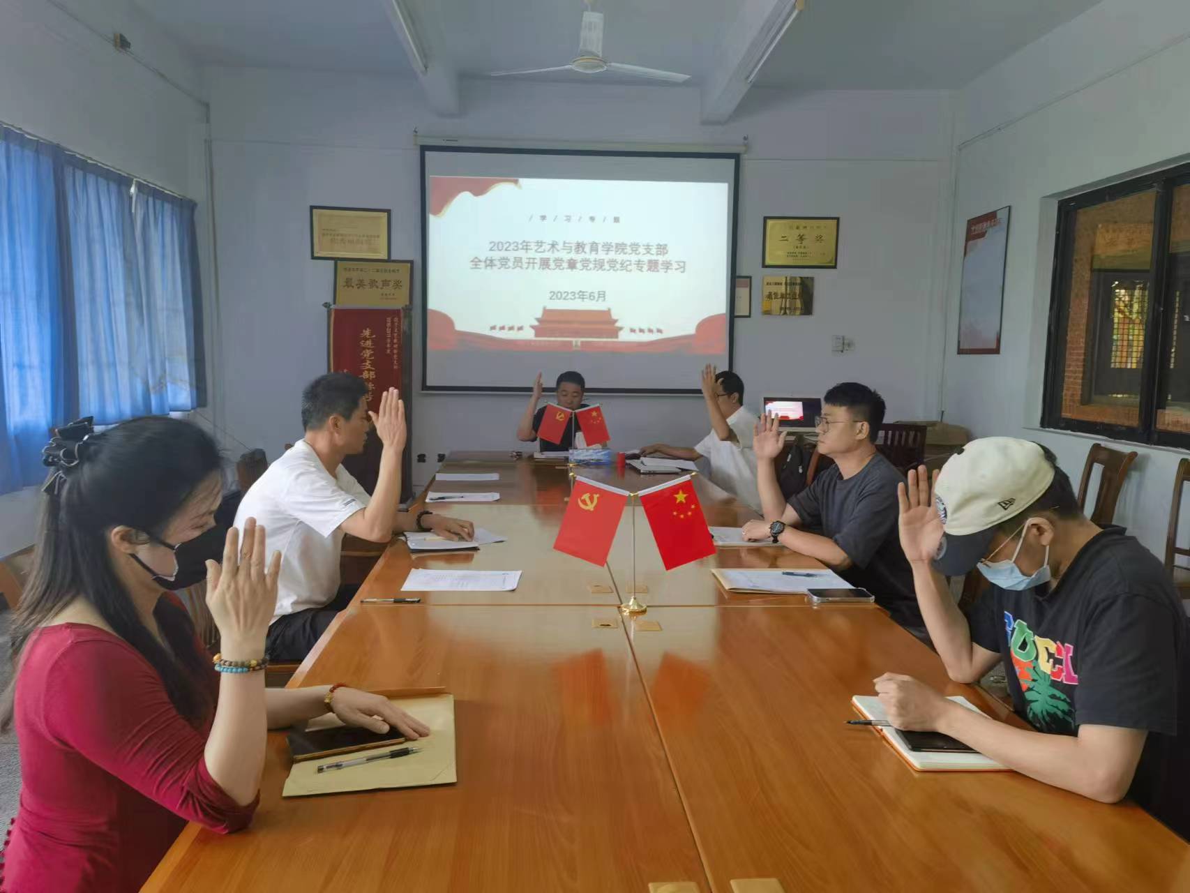 接下来由张文书记介绍支部审查情况,同时与会党员民主评议,充分发表意见,提出不足和努力方向,并对二位同志分别进行现场投票表决。