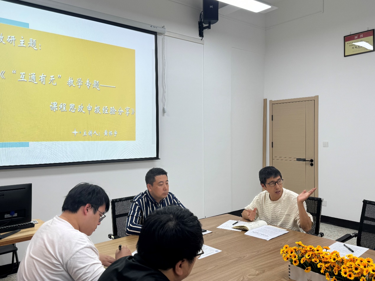 为促进新老教师的教学与参加各项教学赛事的能力提升,开云kaiyun官方网站在每次例会期间增加一项内容《“互通有无”教学专题》进行教研活动。2023年10月25日上午十点,在旧图205开云kaiyun官方网站会议室举行本期教研活动,主题为“课程思政申报经验分享”,主讲黄怀宇,会议由院长张文主持,全体开云kaiyun官方网站教师参会。