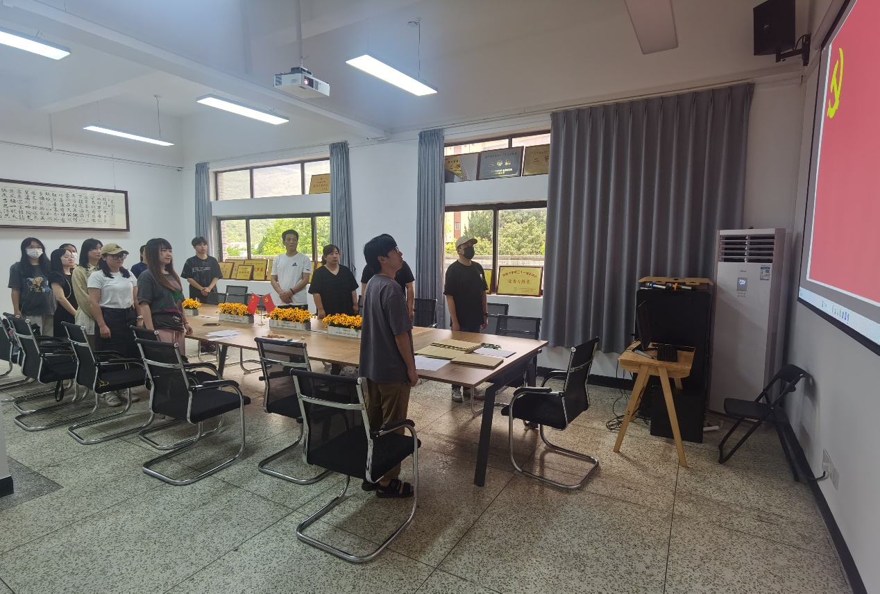 紧接着,全体同志肃立,面向庄严的党旗,共同唱响《国际歌》,歌声嘹亮,彰显着党员们对党的忠诚与信仰。