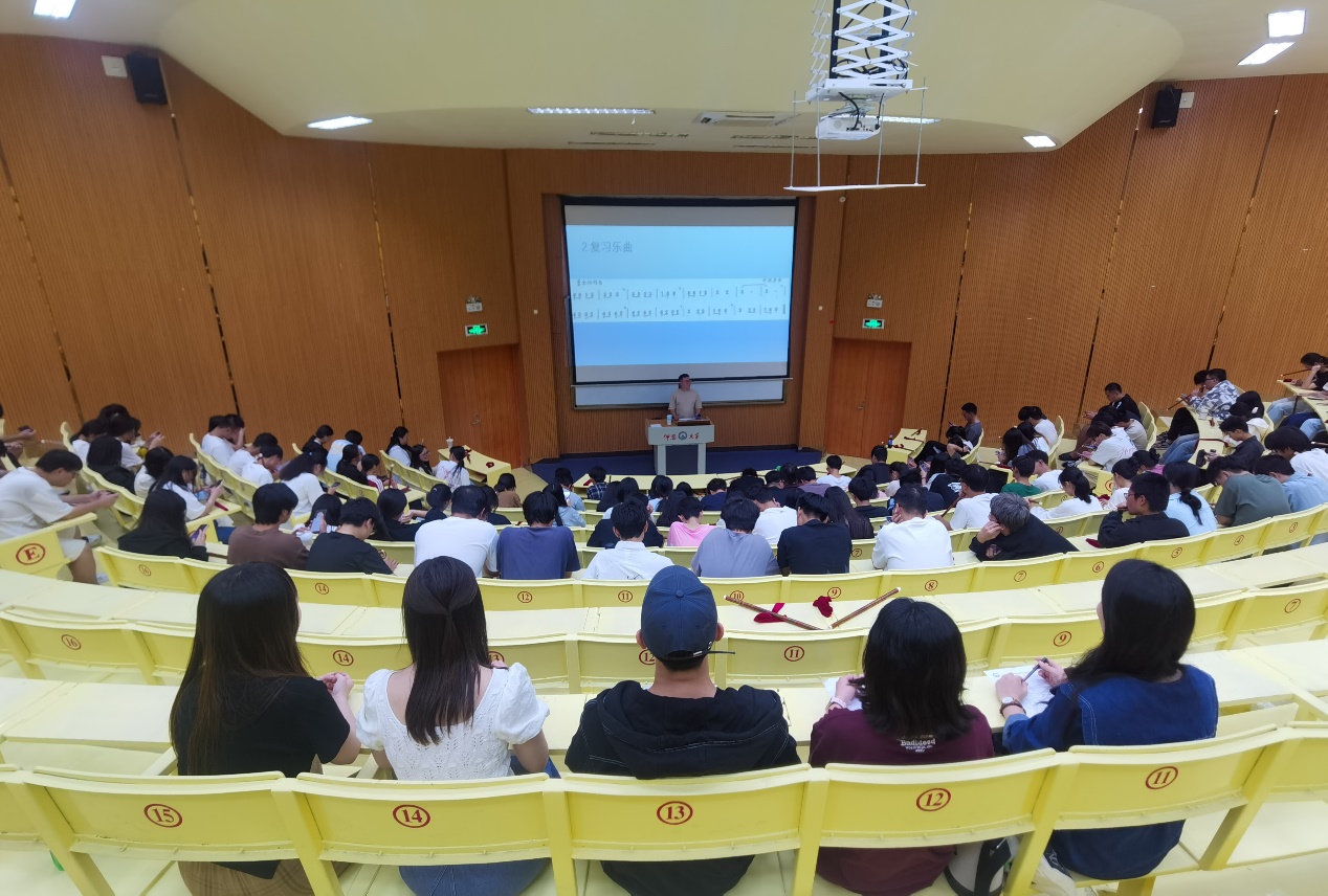 11月11日晚9至10节,致知讲堂内,一场别开生面的竹笛乐器课作为课程思政示范项目精彩上演。上课教师黄怀宇以其深厚的竹笛演奏和教学功底,为师生们带来了一场音乐与思政的双重盛宴。