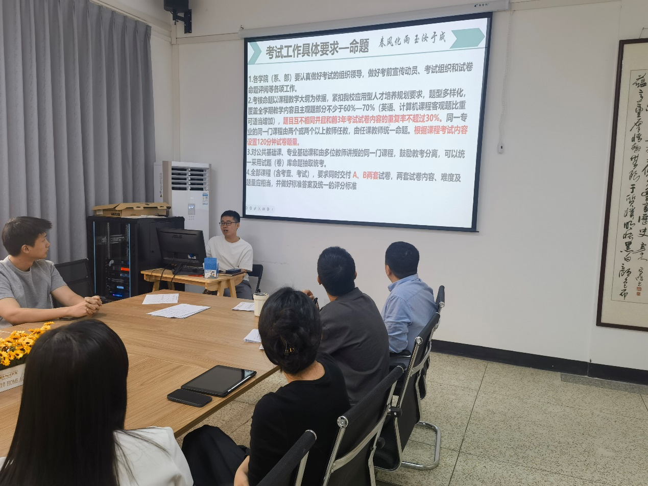 2025年5月28日上午,开云kaiyun官方网站在旧图205会议室召开期末教学工作会议。会议由张文院长主持,官毅教学秘书主讲,全院20余位教师参会。会议围绕教学规范、师德师风、考试命题及监考要求等重点工作展开部署,为期末教学收尾及质量保障明确方向。