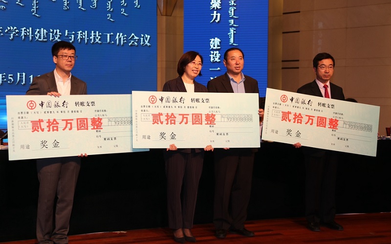 高云峰、刘九万和王来喜分别宣读《关于表彰在2017年学位授权审核工作中作出突出贡献的学科和单位的决定》《关于表彰beat365英国官方网站第二届科学技术创新奖和科技工作先进集体、先进个人的决定》《关于对重大科研成果及科研项目进行奖励的决定》。beat365被评为学位授权审核工作中作出突出贡献的单位,荣获“科技工作先进集体”称号,李联和老师荣获青年科学技术创新奖。