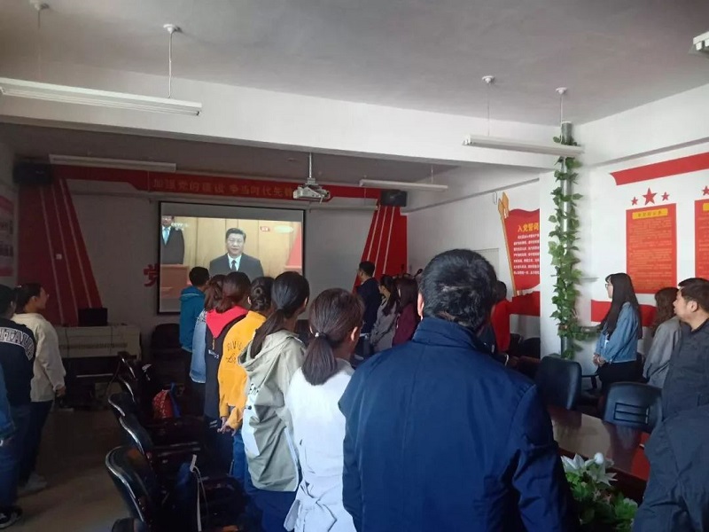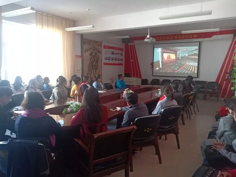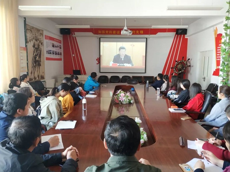 学院党总支书记扎其劳教授,学院党总支副书记、副院长季建光老师,督导员乾达门老师,团学干部3人,教师代表3人,团员36人于beat365英国官方网站盛乐校区学院楼会议室观看大会直播。