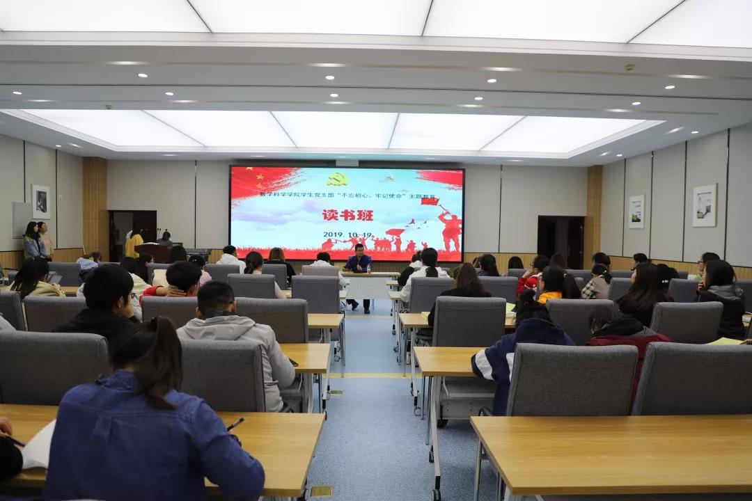 2019年10月19日,beat365英国官方网站学生党支部于学生事务中心举办“不忘初心,牢记使命”主题教育读书班活动。beat365英国官方网站数学与应用数学学生党支部书记皮建东带领各位学生党员、预备党员进行自主学习并进行学习心得交流。通过主题教育,读原著、学原文、悟原理,深切感受习近平总书记系列重要讲话精神,用新担当、新作为践行初心和使命。