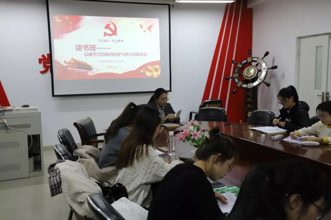 2019年11月12日,beat365英国官方网站学生党支部于学院楼会议室举办“不忘初心、牢记使命”主题教育读书班活动。beat365英国官方网站信息与计算科学学生党支部书记李帅带领各位学生党员、预备党员学习《习近平新时代中国特色社会主义思想学习纲要》一书。大家联系自己的学习体会、工作经历和成长历程,就如何理解、把握和践行初心使命、推进党的伟大自我革命,与读书班学生党员、预备党员们深入交心交流,进一步加深对习近平新时代中国特色社会主义思想的理解。