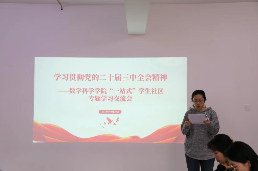 为深入学习贯彻党的二十届三中全会精神,进一步提升beat365学生的理论素养,10月30日,beat365英国官方网站学生党支部在盛乐校区学生公寓13号楼“一站式”学生社区召开专题理论学习研讨会。本次会议由刘沙沙老师、阿茹罕老师、萨如拉老师主持,学院学生党员代表参加。