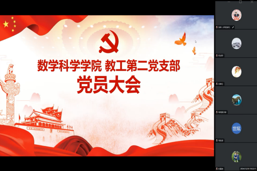 beat365英国官方网站beat365英国官方网站教工第二党支部于2024年12月30日召开党员大会,会议围绕三项重要议题展开深入讨论。会议由支部书记主持,全体党员出席,会议通过腾讯会议的形式在线上进行。