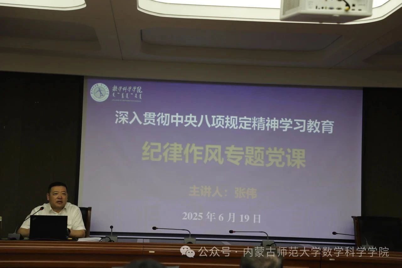 为推进深入贯彻中央八项规定精神学习教育走深走实,强化党员干部作风建设,6月19日,学院党委书记张伟以“筑牢抵制违规吃喝防线,敲响清正廉洁警钟”为题讲授专题党课。学院党委委员、各支部书记、党员教师参加学习。