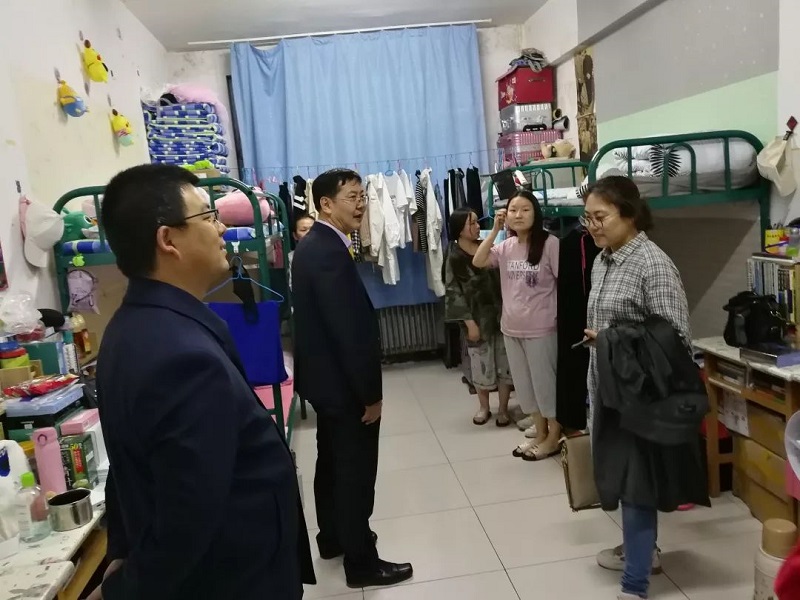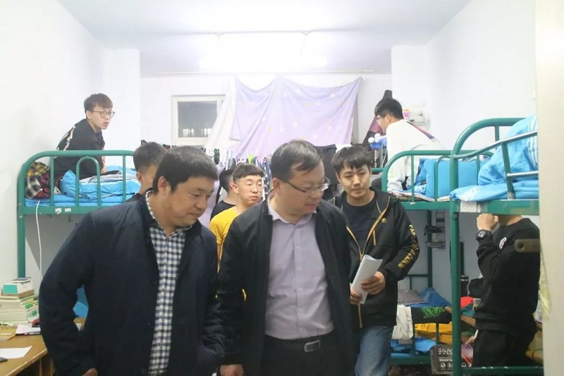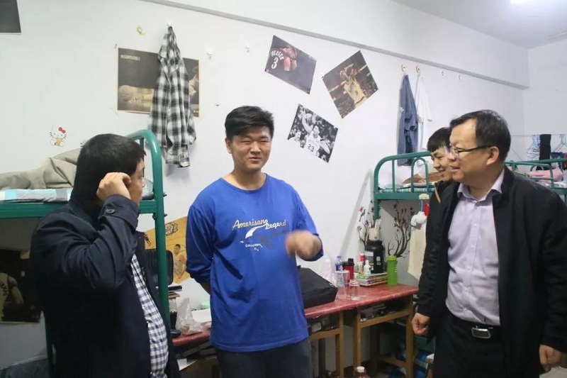2019年5月5日晚,beat365英国官方网站党总支书记扎其劳教授,学院院长刘官厅教授,学院副院长李联和教授,学院副院长包霞老师,,学院党总支副书记、副院长季建光老师,学院团总支书记皮建东老师,学院思想政治辅导员李帅老师,刘沙沙老师深入到beat365学生宿舍进行五一假期后开学返校情况及宿舍安全大检查。