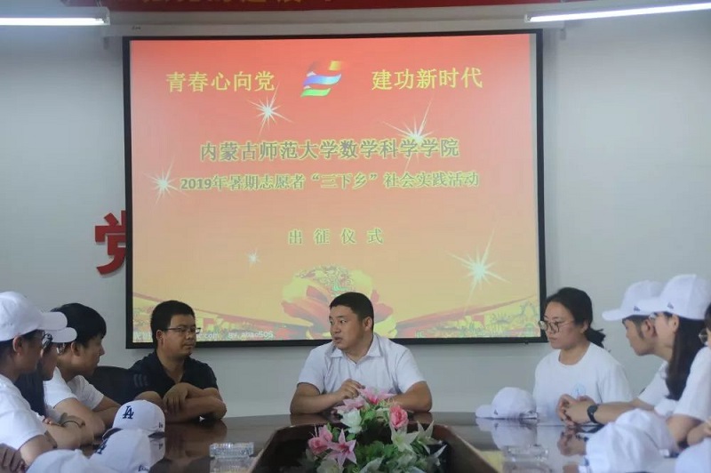 2019年7月13日,beat365英国官方网站于学院楼会议室举办“三下乡”实践活动出征仪式。此次仪式由团总支书记皮建东老师主持,党总支副书记副院长季建光老师,学生思想政治辅导员李帅老师及14位志愿者参与仪式。