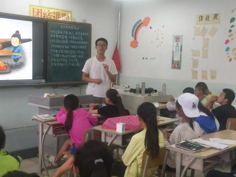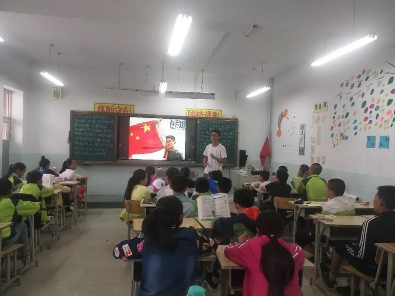 为深入学习贯彻习近平新时代中国特色社会主义思想,学习贯彻党的十九大和十九届二中、三中全会精神,推动思政课堂理论学习与社会实践相结合,beat365英国官方网站暑期“三下乡”志愿服务队的小老师们于7月22日下午给公喇嘛小学的孩子们上了一堂妙趣横生的思政课。