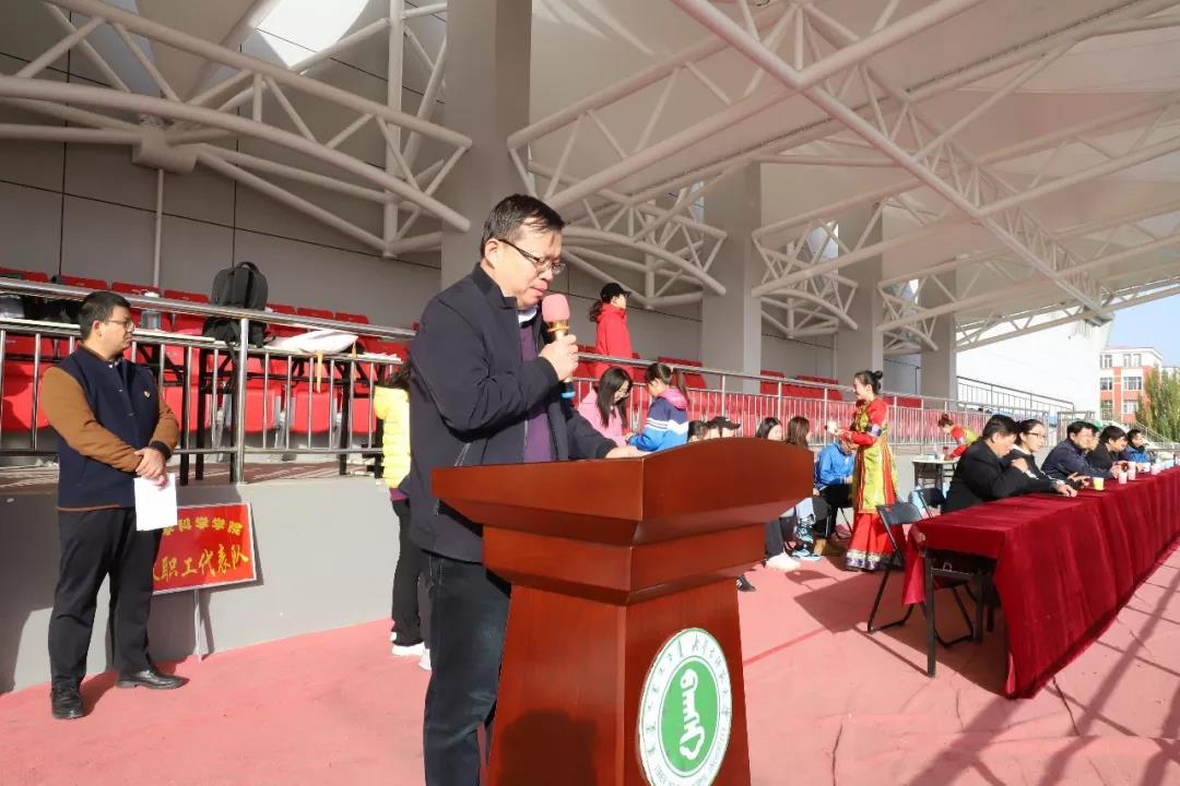 学院党总支书记扎其劳、院长刘官厅、党总支副书记、副院长季建光、副院长李联和、副院长包霞及学院全体教职工参加此次运动会。