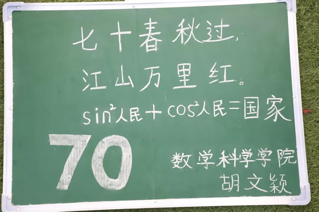 在建国70周年之际,学子们用自己的方式祝祖国70周年生日快乐,愿祖国繁荣昌盛,愿吾辈砥砺奋进,勇往直前!