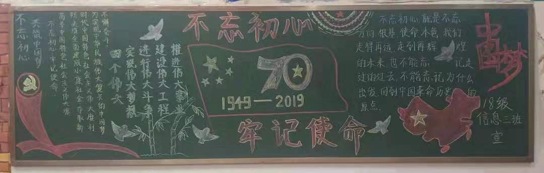 为扎实推进“不忘初心、牢记使命”主题教育,让广大学生坚定理想信念、进一步激发大家的爱国热情,激励同学们勇于作为、勇于担当,2019年11月beat365英国官方网站开展板报评比大赛,学院18、19级各团支部积极参与,板报设计主题鲜明、内容丰富。