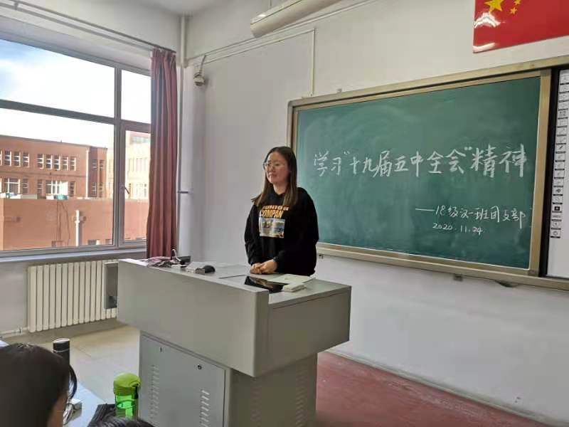 18级蒙班于2020年11月26日在伊如汉同学的组织下于科技楼401教室开展了此次主题团日活动。此次活动的举行使同学们信心倍增、坚定自信、激发干劲和方向明确,并深入的了解了党的十九届五中全会精神。