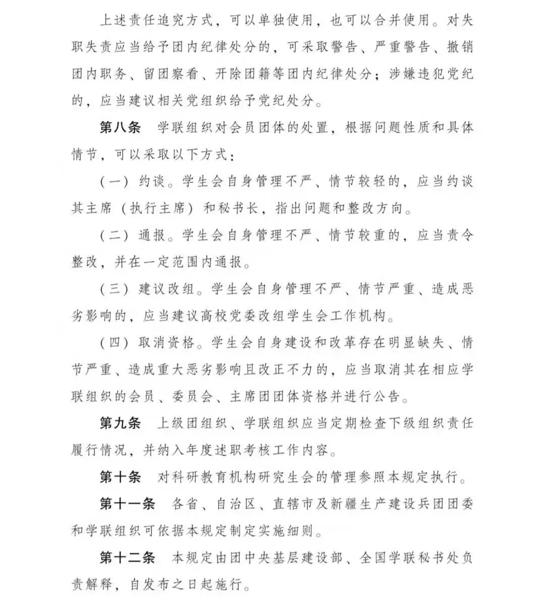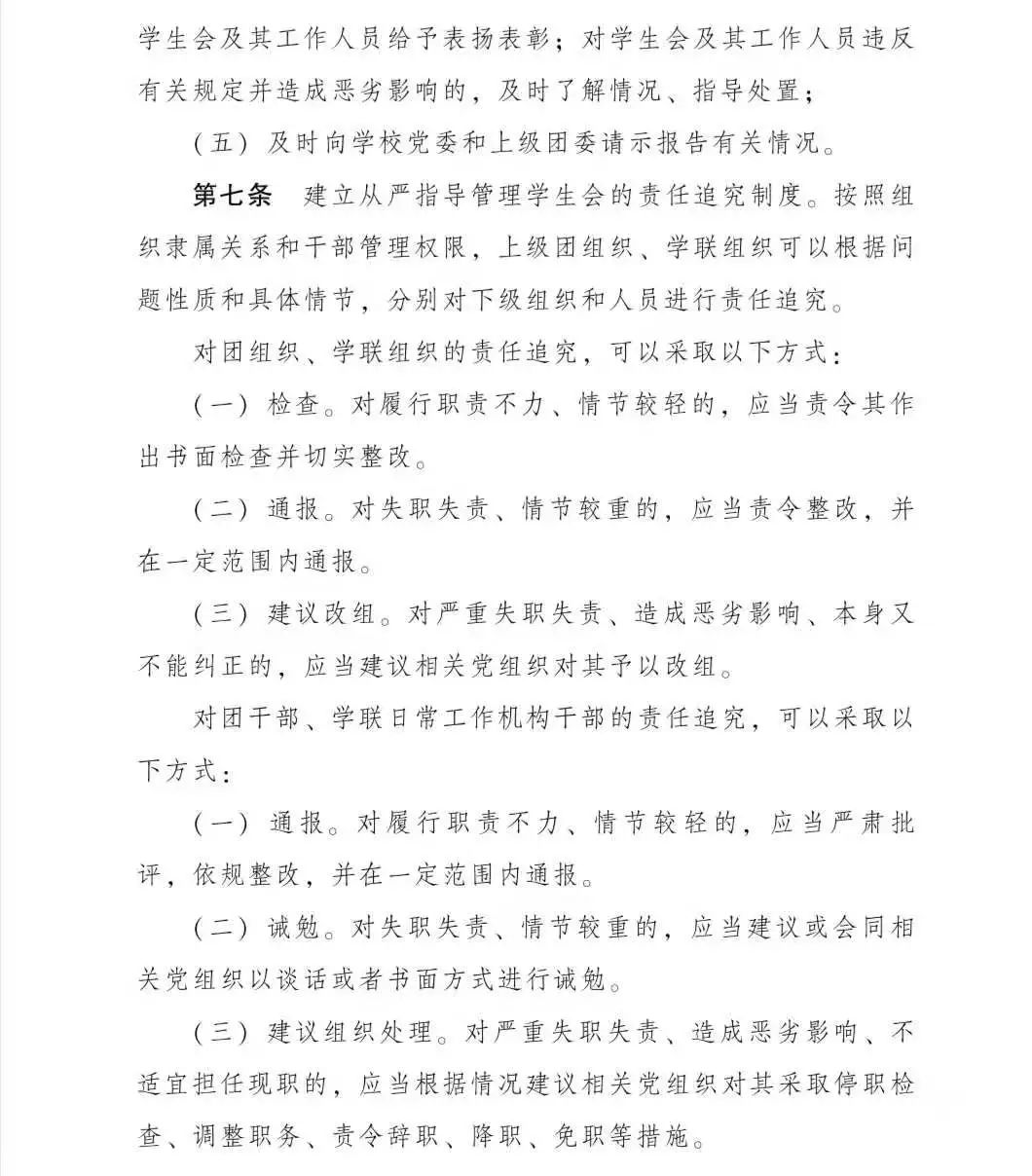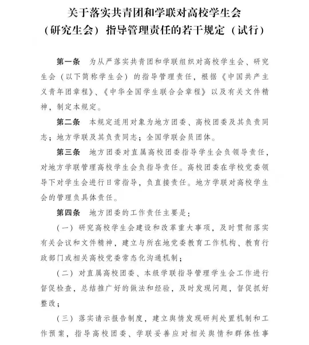 《关于落实共青团和学联对高校学生会(研究生会)指导管理责任的若干规定(试行)》