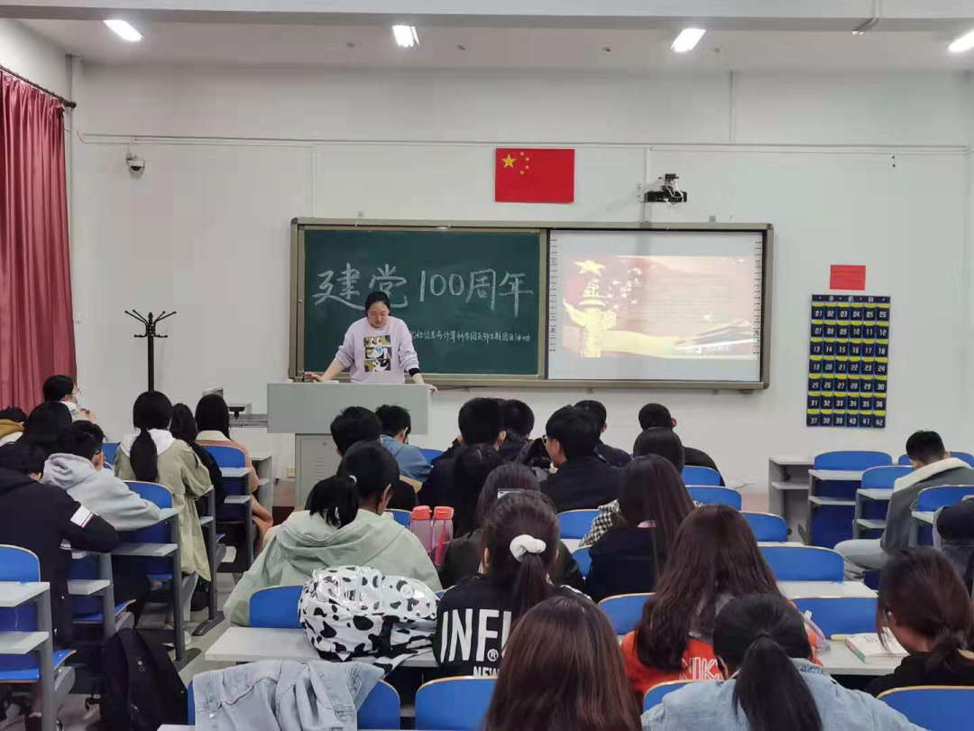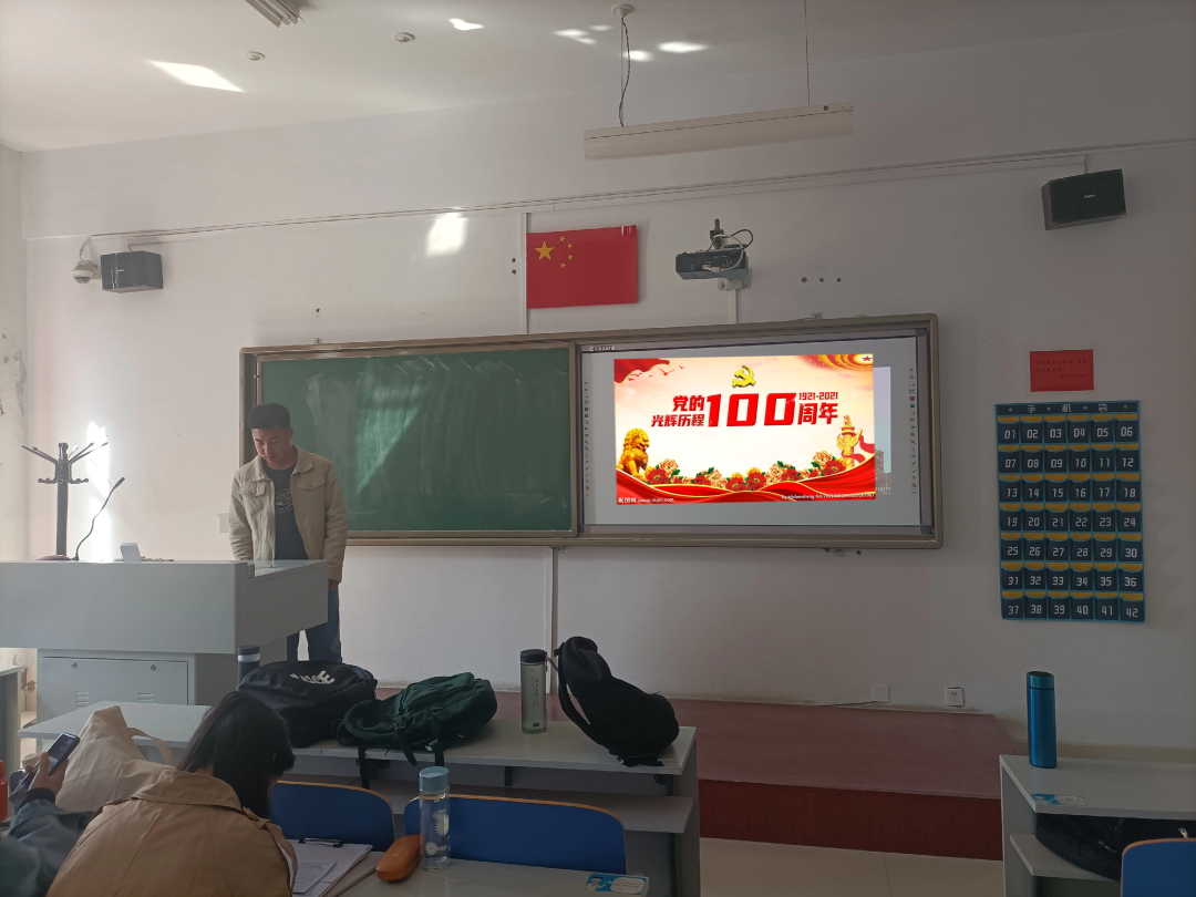 此次团日活动,同学们首先了解了党史背景,在团支书的组织下同学们上台交流分享建党100周年的相关知识。活动最后,同学们观看了《党史故事100讲》。