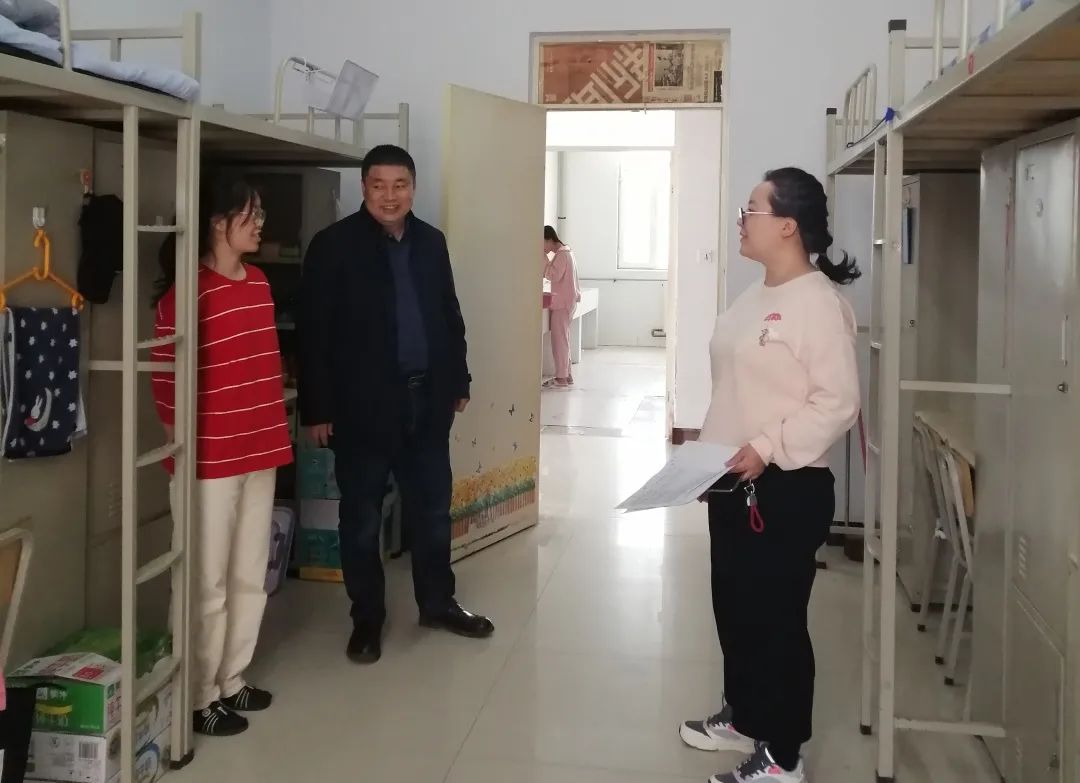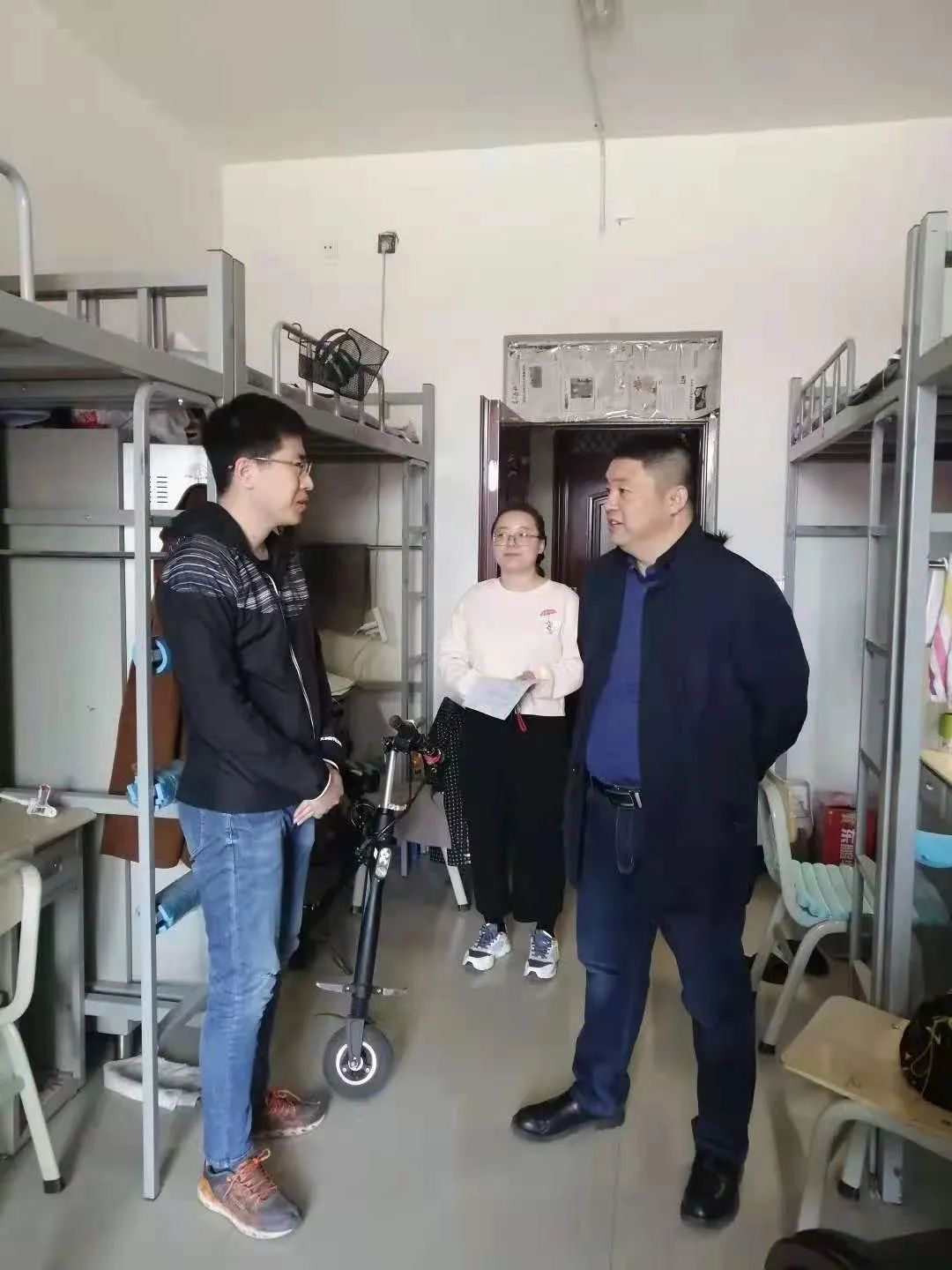 为了加强学生宿舍内务、卫生管理,推进学生宿舍文明建设,2021年4月28日上午beat365党总支副书记、副院长季建光老师,辅导员刘沙沙老师来到研究生公寓检查学生宿舍内务情况。