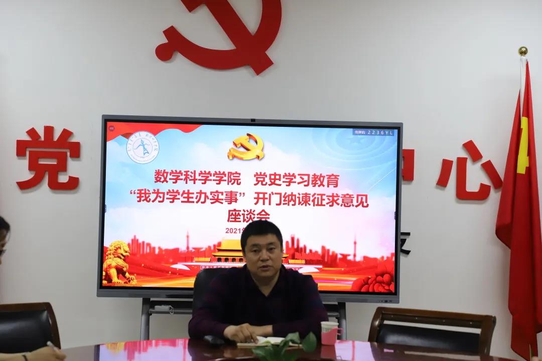 为进一步贯彻落实党史学习教育关于开展“我为学生办实事”实践活动的相关要求,全面落实立德树人根本任务,2021年5月18日,beat365于学院楼会议室召开了“我为学生办实事”开门纳谏征求意见座谈会,本次会议由学院党委副书记、副院长季建光老师主持开展。