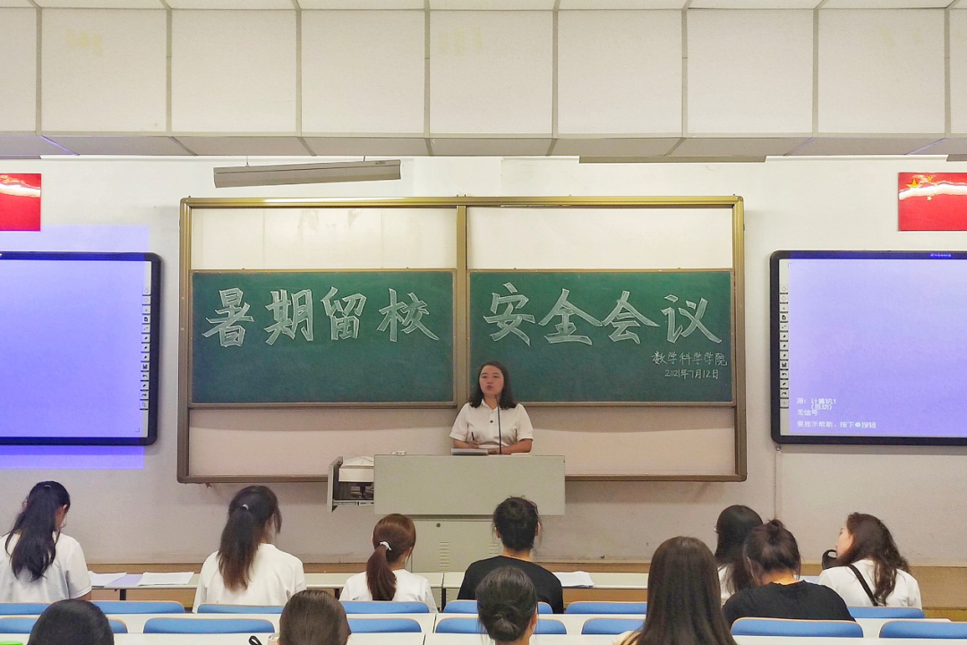 为保障2021年暑期留校住宿学生在校期间正常的学习、生活及其人身财产安全,beat365英国官方网站根据学校安全工作要求,安排值班老师对学生进行管理,及时妥善处置学生可能遇到的问题或突发状况。值班老师按照值班表严格履行值班职责,如遇突发状况或紧急事故将第一时间向带班领导汇报情况,并及时赶往事发现场进行妥善处置。并于7月12日,beat365英国官方网站辅导员刘沙沙老师在行知楼118召开2021年暑期留校安全会议,参会人员为本次暑期全体留校人员。刘老师从有关学生人身、财产安全等安全事项方面做出强调。