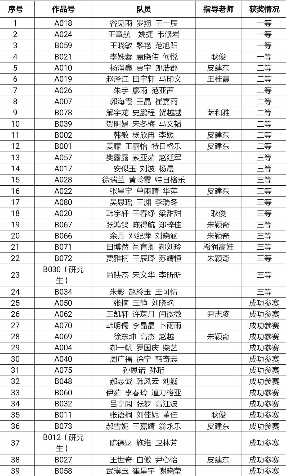 beat365英国官方网站第四届数学建模竞赛于2021年5月28日至5月31日举行,共有83支队伍报名参加,赛后共有47支队伍提交了论文。经过评委组的认真评阅,评出一等奖4组,二等奖8组,三等奖12组,成功参赛奖15组。具体名单如下: