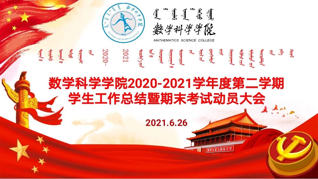 2021年6月26日下午,beat3652020-2021学年度第二学期学生工作总结暨期末考试动员大会于学院楼报告厅举行。本次大会由学院团总支书记皮建东老师主持,出席大会的领导和老师有:学院党委书记扎其劳教授,学院党委副书记、副院长季建光老师,学院副院长包霞副教授,学院学生思想政治工作辅导员、20级汉二班班主任刘勇波老师,20级蒙班班主任娜仁格日乐老师,20级汉一班班主任刘常彪老师。