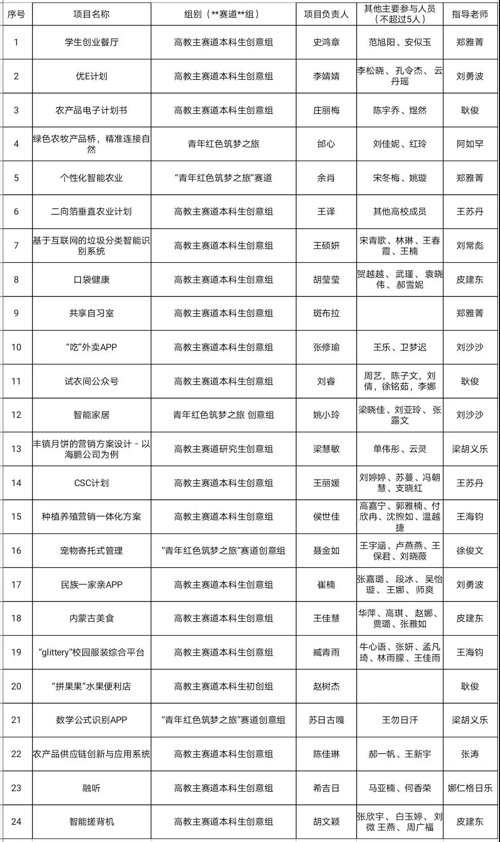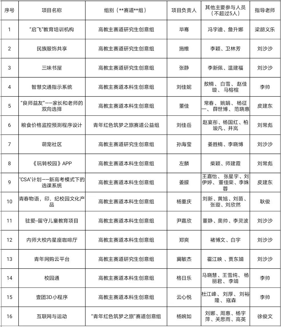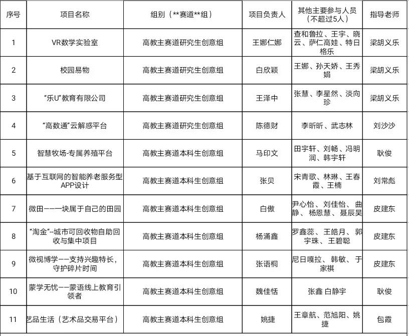第七届中国国际"互联网+"大学生创新创业大赛beat365英国官方网站院赛初审名单:
