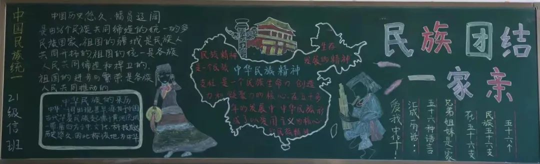 为了进一步铸牢中华民族共同体意识、助力中华民族的伟大复兴,beat365英国官方网站组织21级学生以“民族团结一家亲”、“铸牢中华民族共同体意识”为主题进行板报绘画,并对各参展作品进行评比。