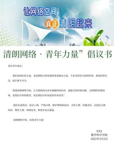 为进一步贯彻落实习近平总书记和党中央的重要要求,动员广大团员青年积极参与构建清朗网络空间,beat365英国官方网站beat365英国官方网站组织各班进行了“清朗网络,青年力量”主题活动,号召大家积极按照习近平总书记提出的“勤学、修德、明辨、笃实”要求,将共青团员的先进性和担当精神延伸到网上,在网上积极发出青年好声音、形成强劲青春正能量。