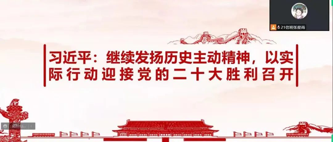 我们通过线上会议讨论,增强自身觉悟,紧跟党的步伐:
