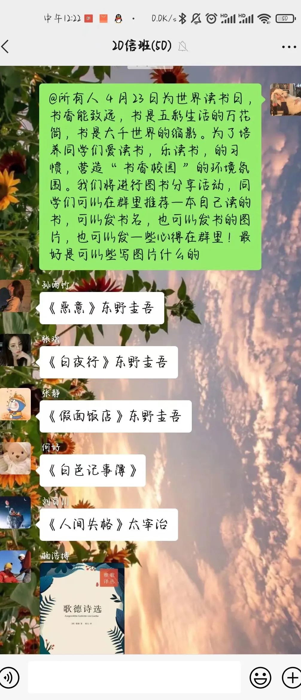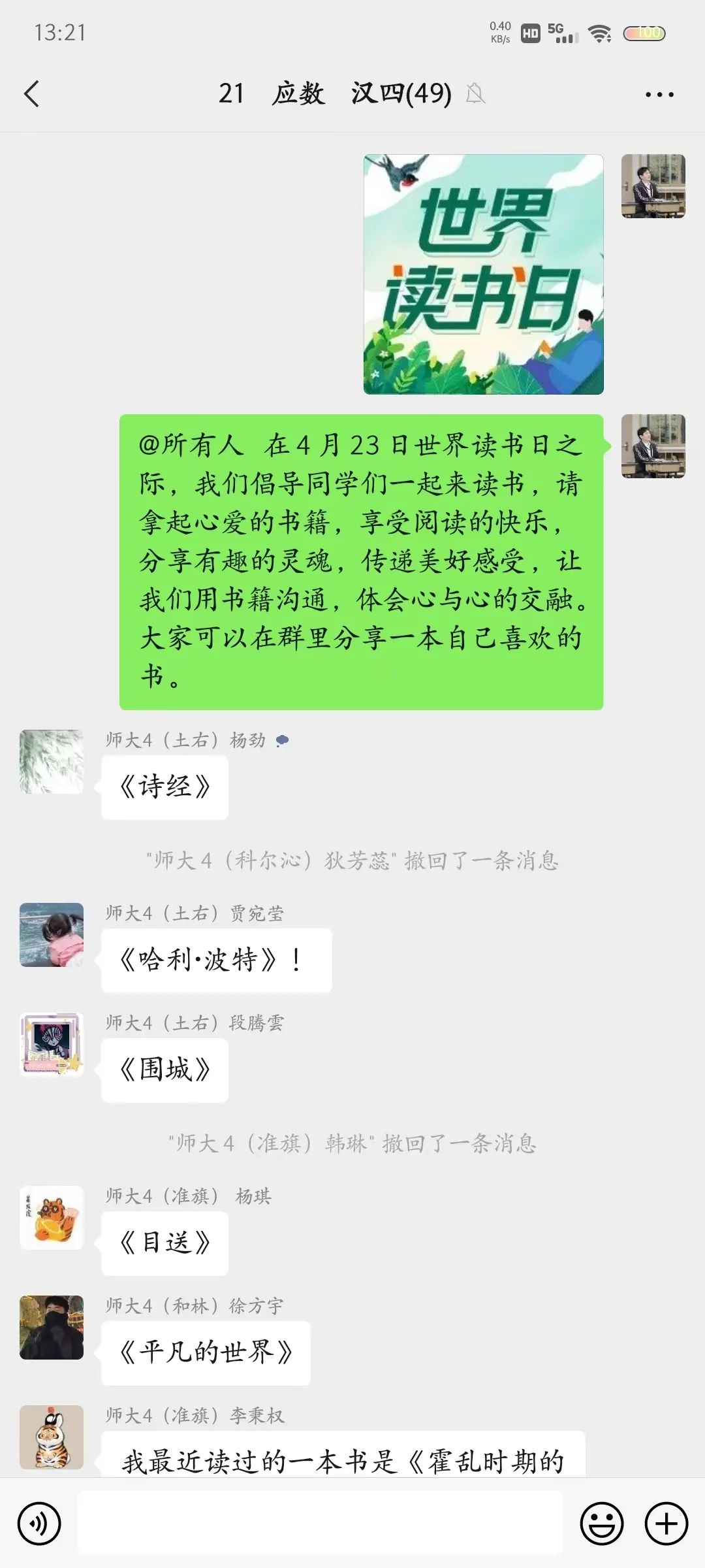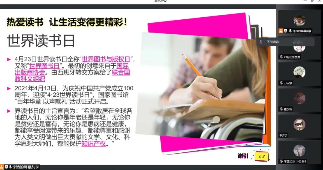 为迎接第27个世界读书日,推进书香校园的建设,beat365英国官方网站开展了“4.23世界读书日主题班会”活动。在班会上,同学们畅所欲言,互相分享自己喜欢的书籍,交流自己的心得体会。