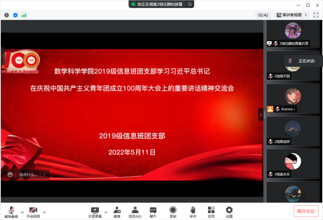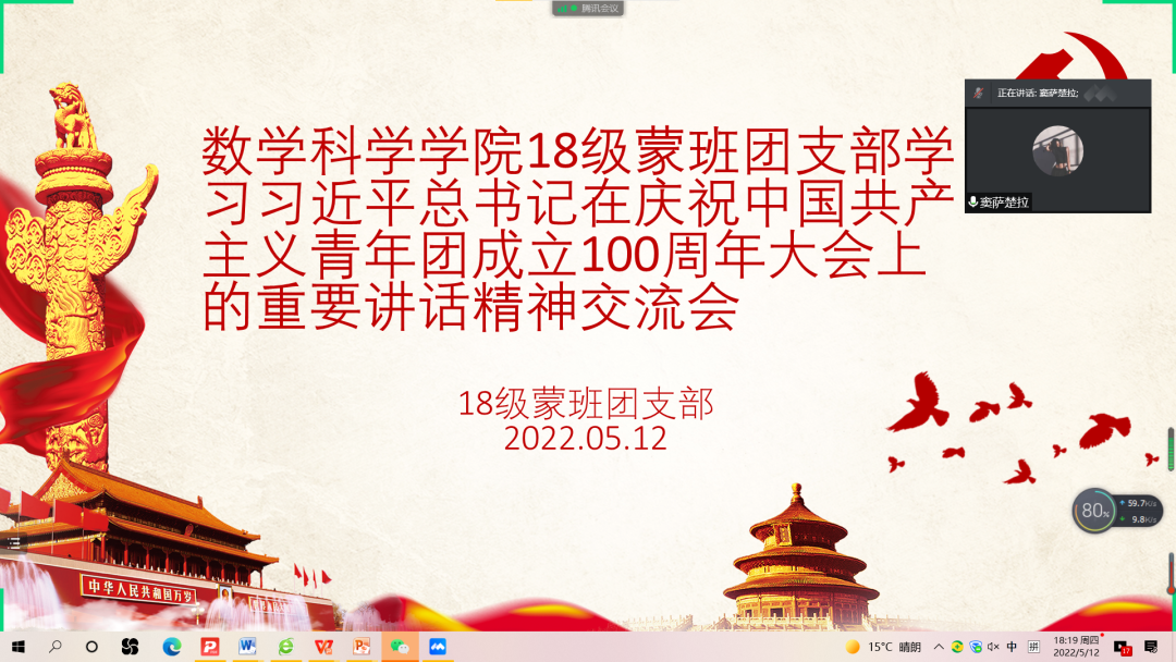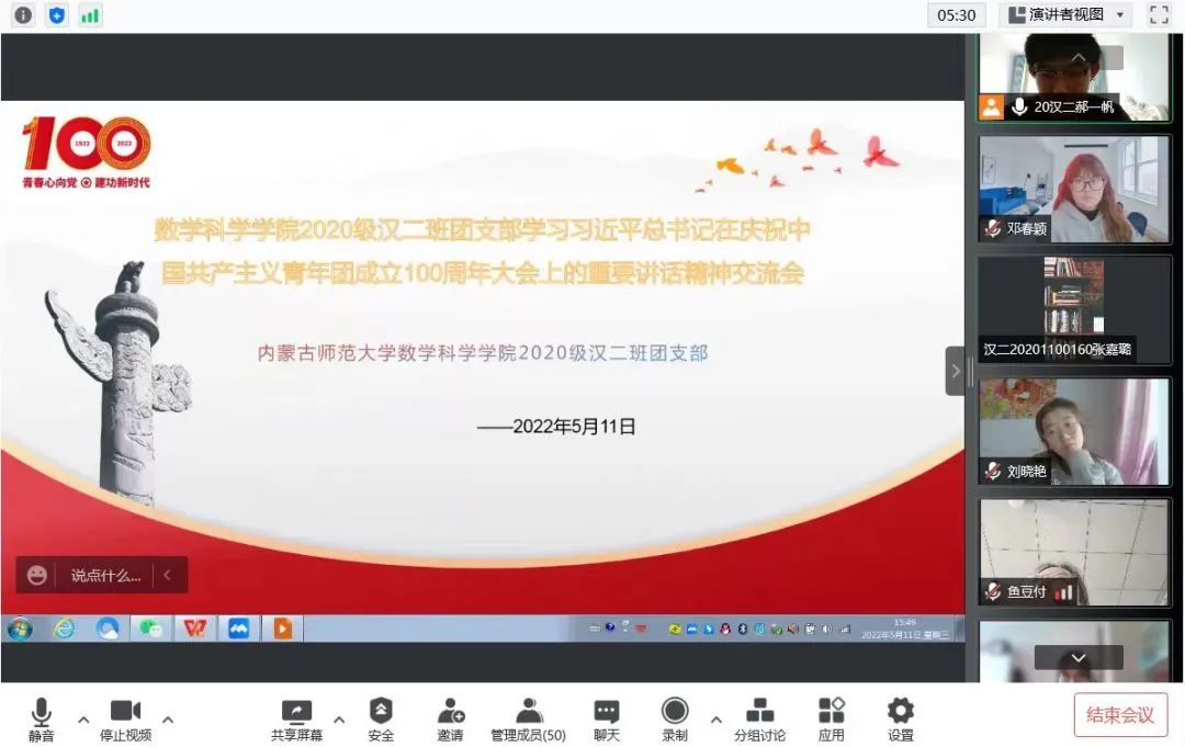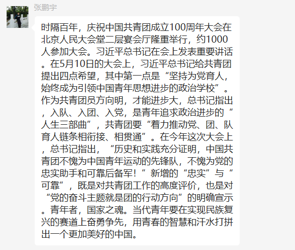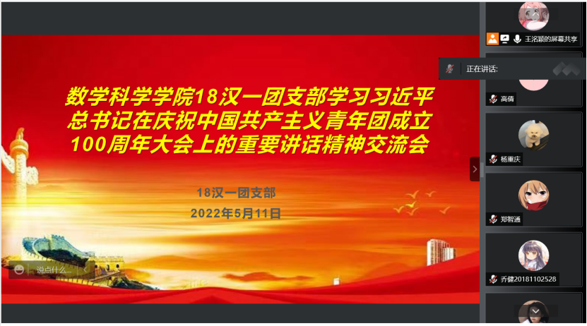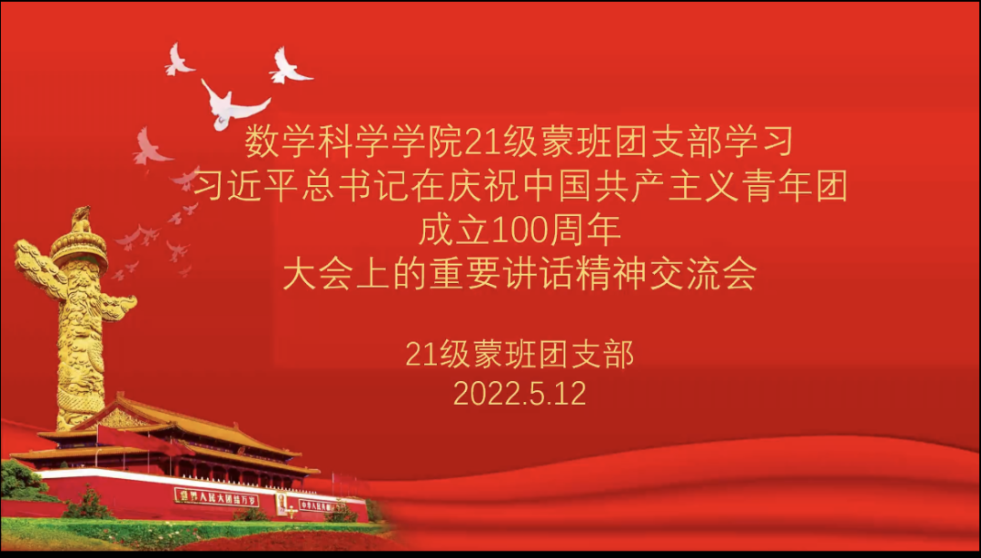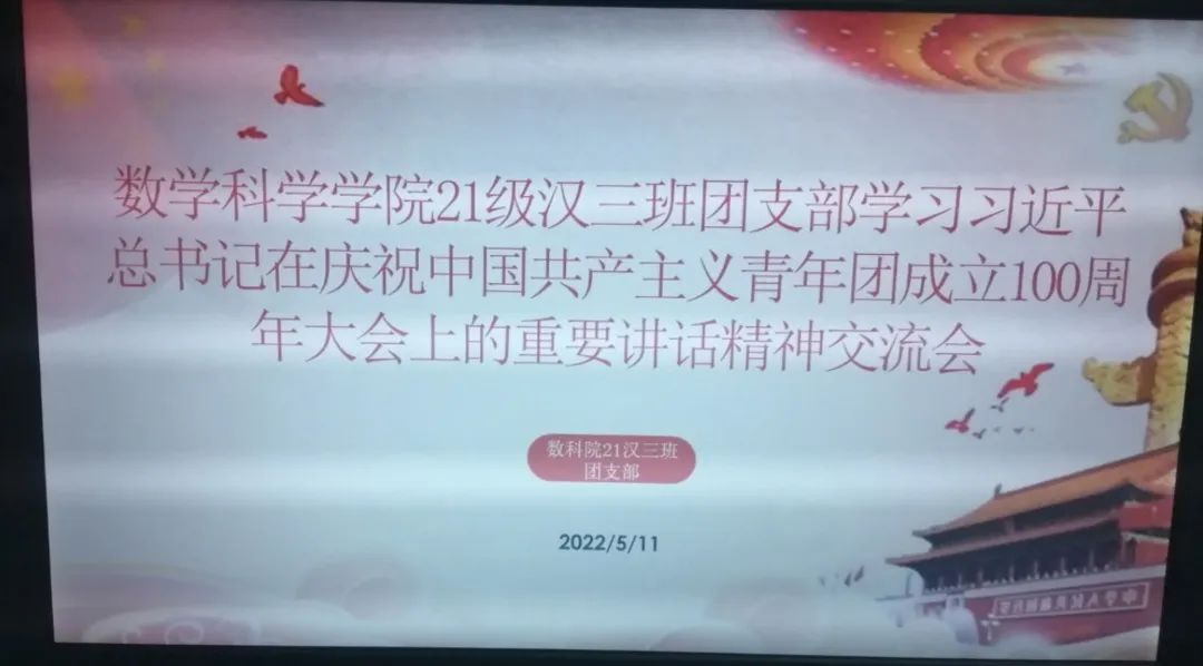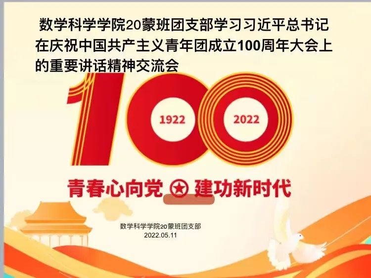 5月10日,庆祝中国共产主义青年团成立 100 周年大会在京隆重举行,习近平总书记发表重要讲话。beat365英国官方网站全体团员青年收看了大会盛况,聆听了总书记的重要讲话。会后,各团支部积极行动,组织开展了学习习近平总书记在庆祝中国共产主义青年团成立100周年大会上的重要讲话精神交流会,分享学习心得,感悟党的关怀,以实际行动为团的百年华诞献礼。
