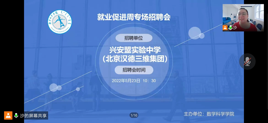 为更好的推进《beat365英国官方网站2022届毕业生就业促进周系列活动方案》的工作要求,全力促进毕业生尽早就业、顺利择业,5月23日上午10:30,学院举办了“就业促进周”网络专场招聘会,此次招聘专场是兴安盟实验中学,实验中学校长解杰、副校长李郭瑞、吴老师以及学院党委副书记、副院长季建光、学生工作与就业办公室副主任刘沙沙、辅导员萨如拉出席此次招聘会议,beat3652022届数学与应用数学专业的60多名毕业生参加本次招聘会。