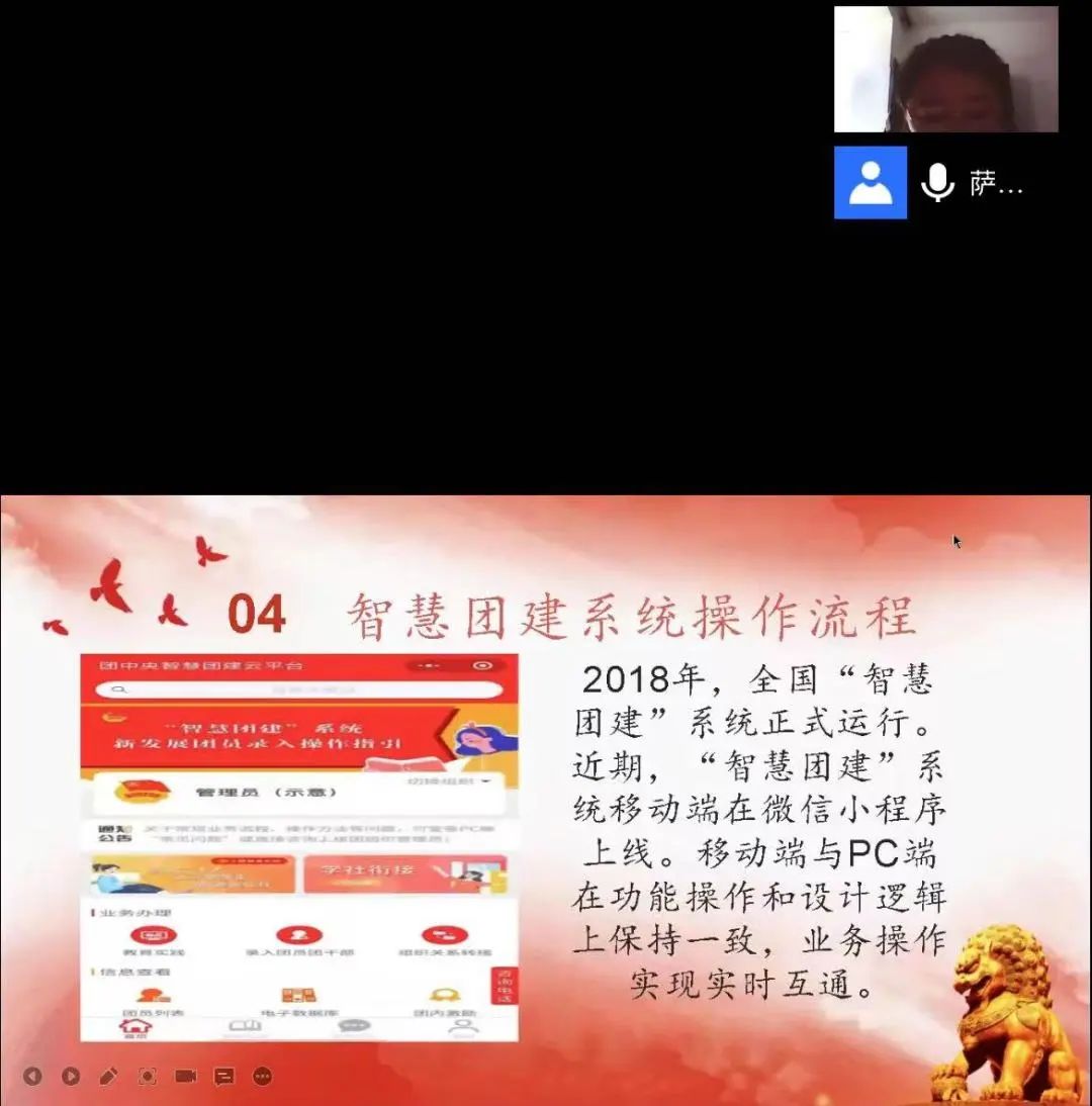 讲座上,萨如拉老师从智慧团建系统的转出讲起、转出两个方面详细的指导同学们进行团组织的转接。