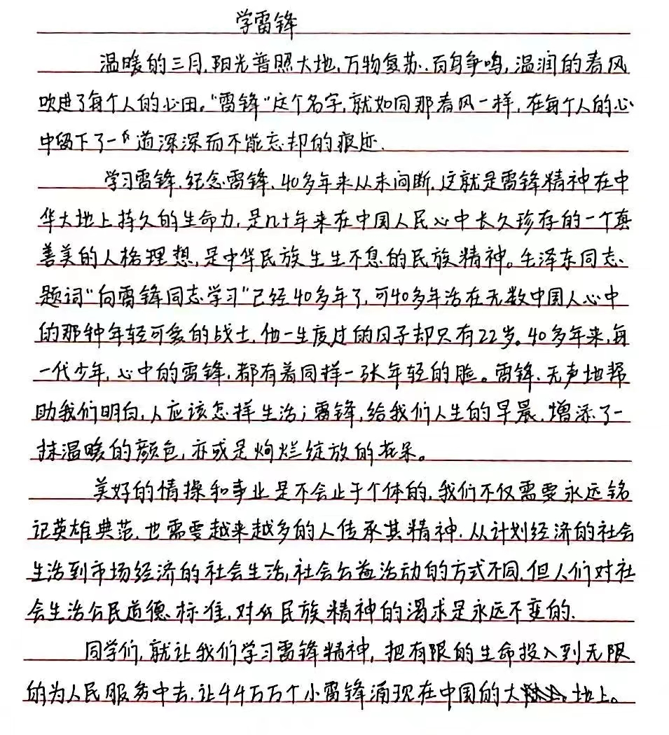 为进一步学习和弘扬雷锋精神,形成“人人学雷锋、时时有雷锋、处处见雷锋”的良好氛围,扎实有效推进学生思想道德教育,3月5日,beat365英国官方网站举办学雷锋纪念日主题征文活动。