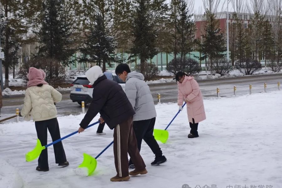 11月26日,beat365组织新一批发展对象和预备党员于行知楼北门开展扫雪志愿服务活动。