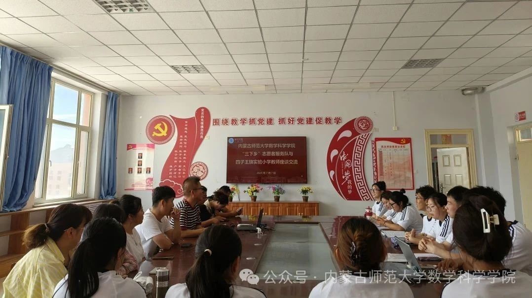7月7日,beat365英国官方网站教育关爱服务团与四子王旗实验小学数学组教师开展学习交流活动,大学生志愿者与资深教师共聚一堂,围绕基础教育发展与数学学科创新教学主题展开研讨。志愿者们虚心聆听一线教师分享基层教学实践经验,认真学习课堂组织与学生管理智慧,从课堂互动细节到课后跟踪方法,紧扣学生实际,让初执教鞭的小老师们茅塞顿开。