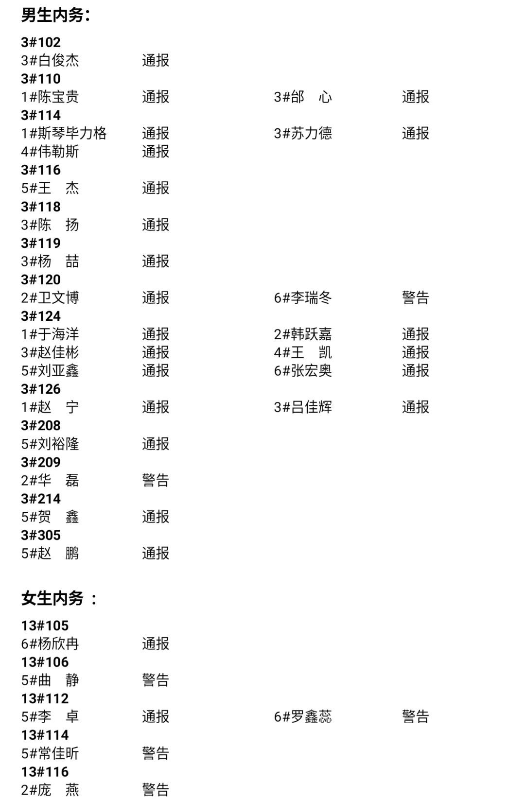 院内通报