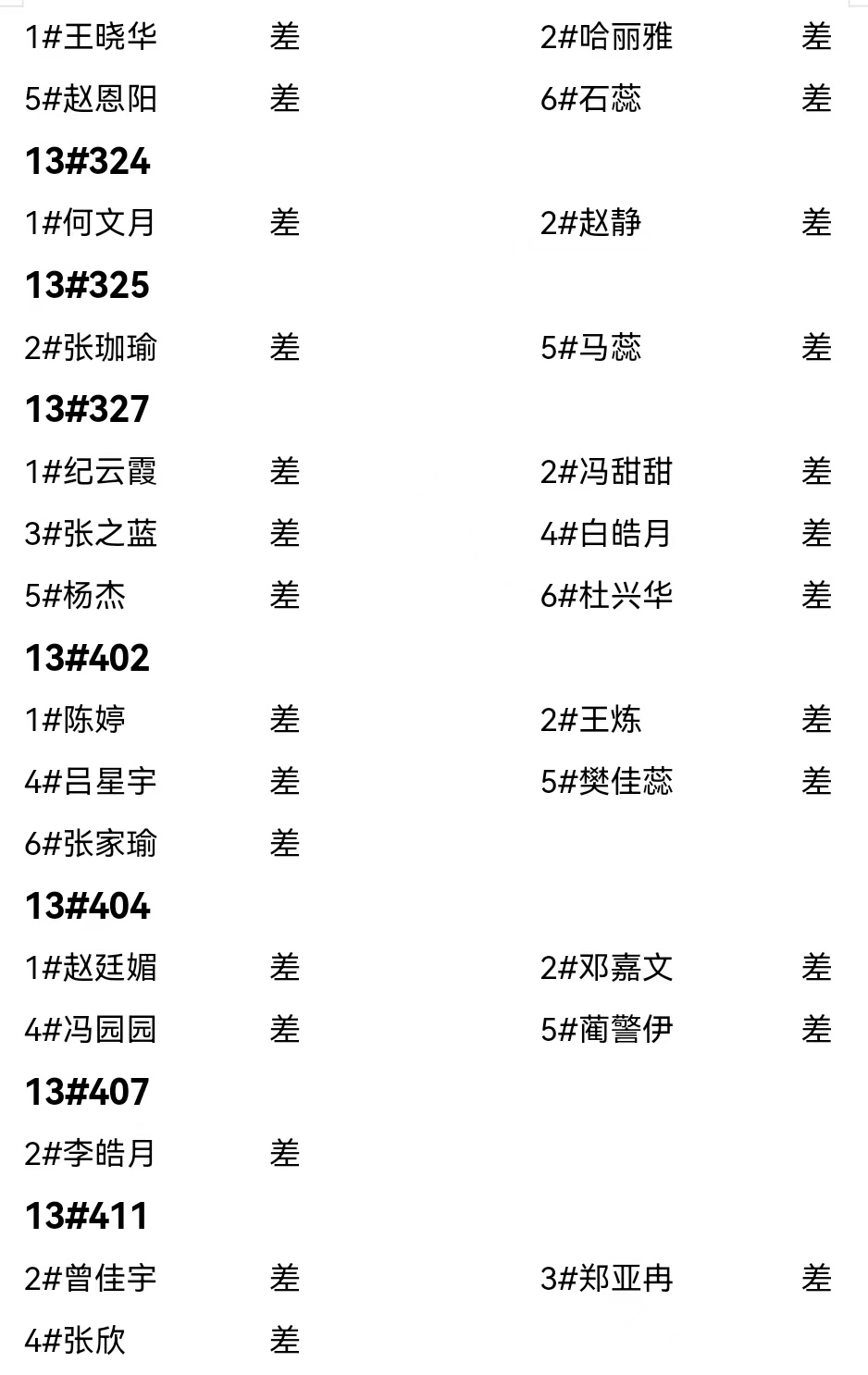 第三周夜不归宿情况