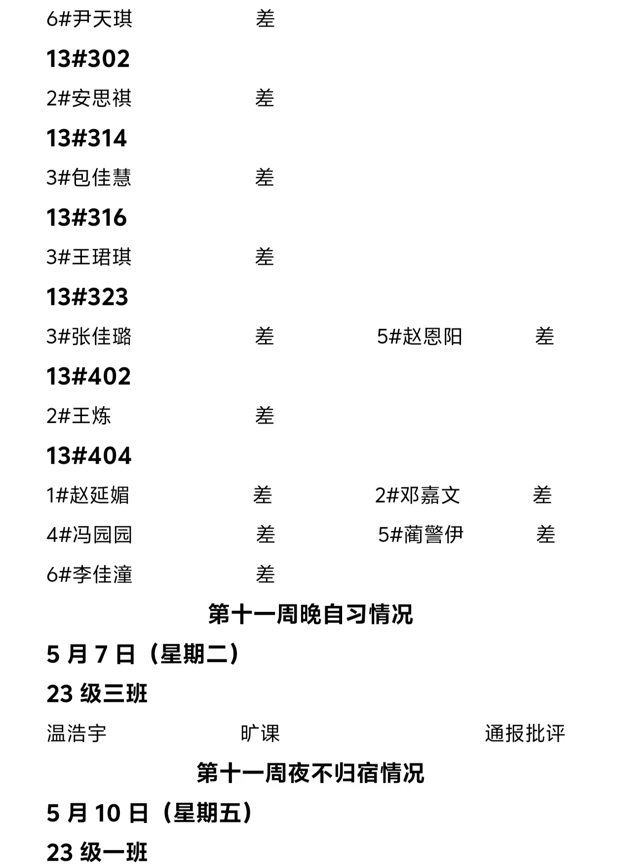 beat365英国官方网站2023——2024年度第二学期第十一周通报情况