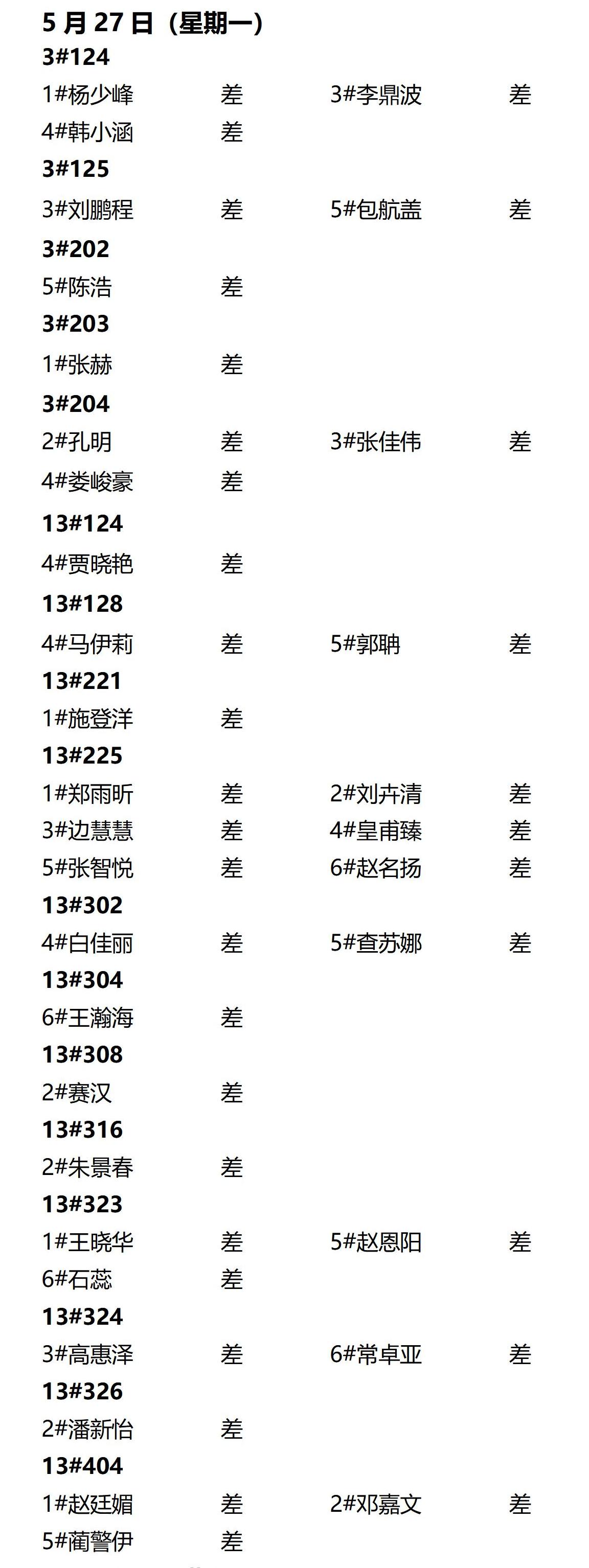 第十四周内务情况