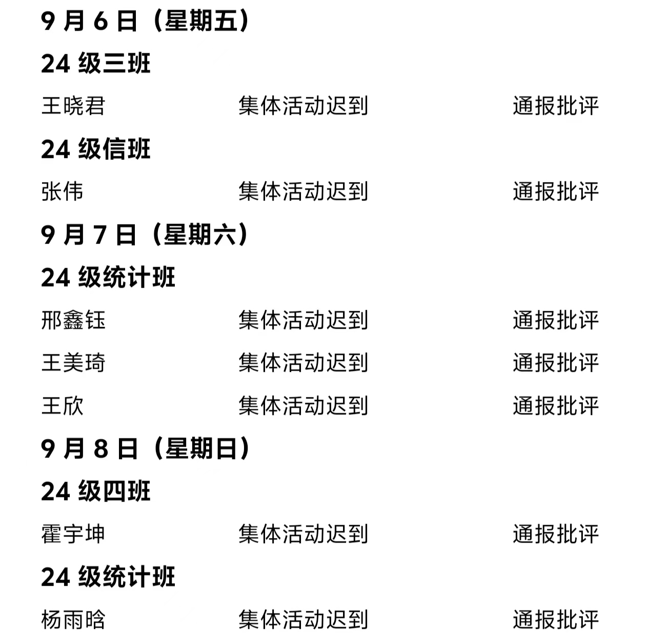 beat365英国官方网站2024——2025年度第一学期第二周通报情况