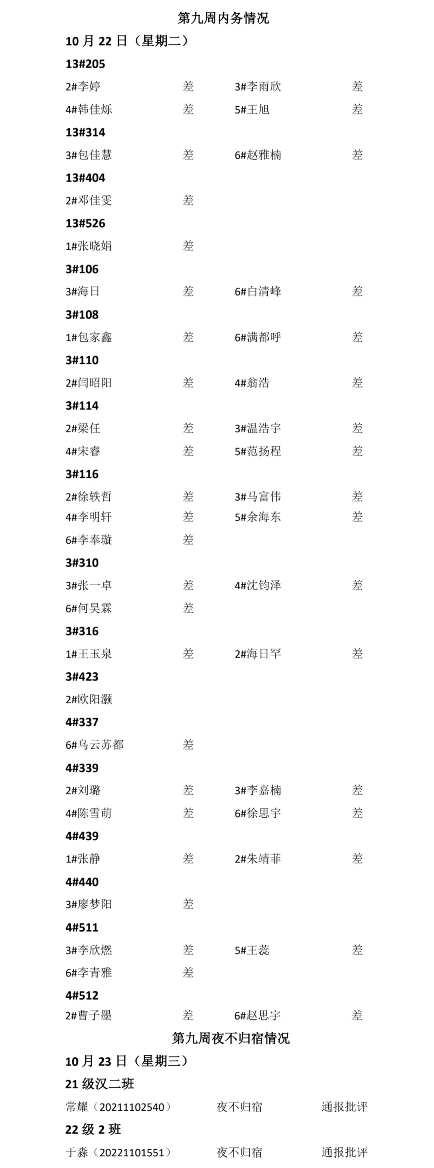 beat365英国官方网站2024——2025年度第一学期第九周通报情况