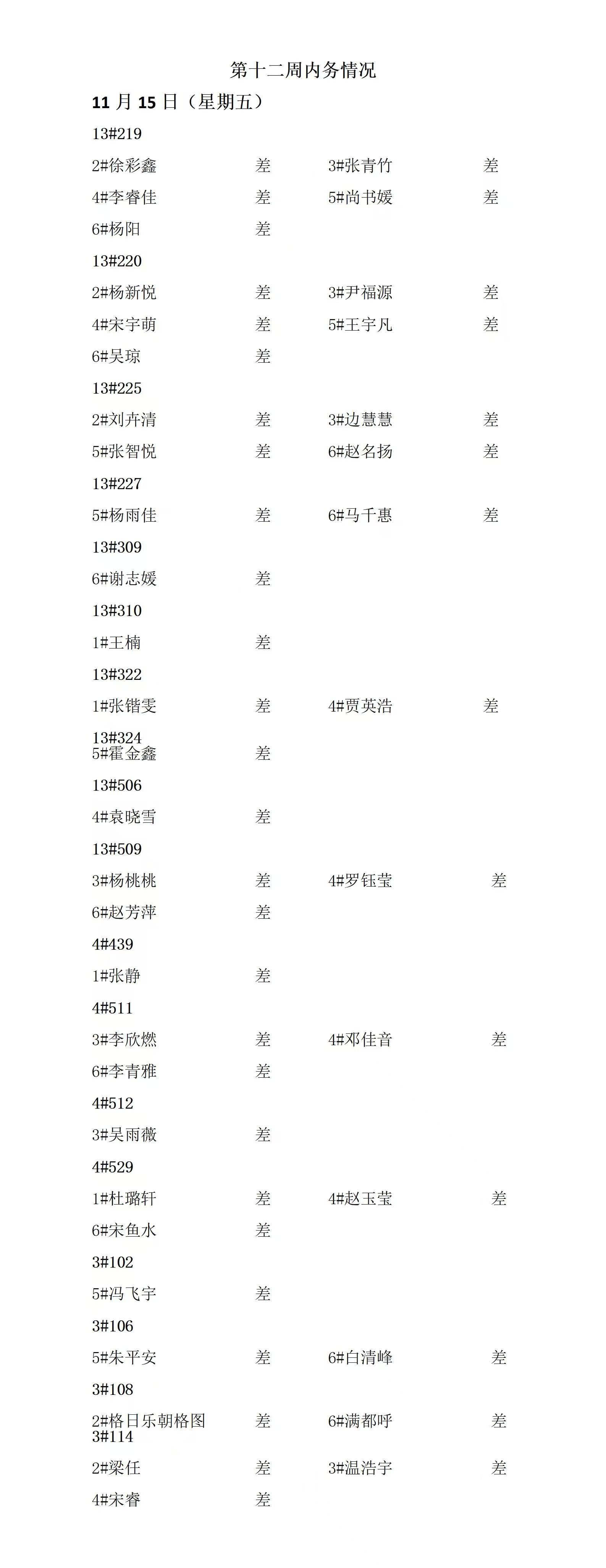 beat365英国官方网站2024——2025年度第一学期第十二周通报情况